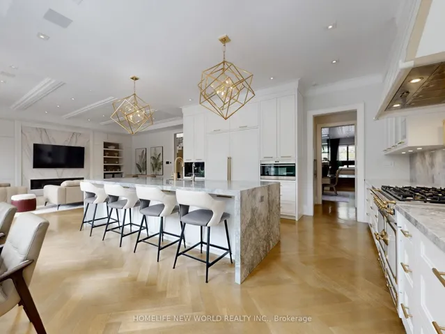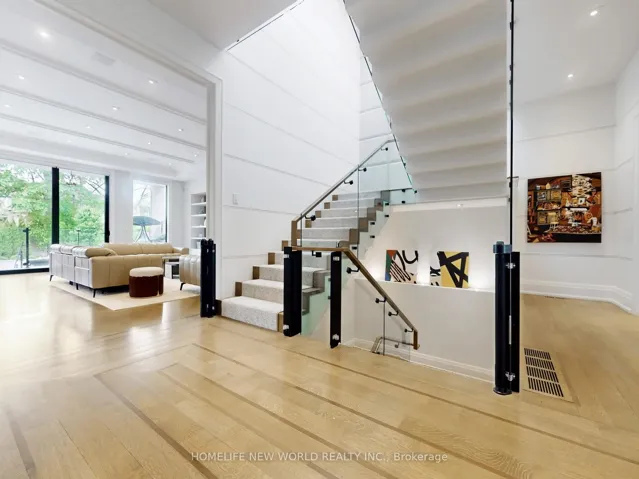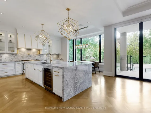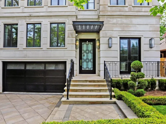 Welcome to 154 Yonge Blvd, a rare opportunity to own a custom-built luxury home! This residence offers over 7,200 sq.ft. of flawless design and craftsmanship in one of Toronto’s most prestigious neighbourhoods, Bedford Park-Nortown. Meticulously built by Saaze with interiors by renowned designer Robin Nadel, the home combines timeless architecture with modern living. From the soaring 14-ft ceilings, oak rift-cut hardwood floors, and elegant panel detailing, every finish speaks sophistication.The main floor boasts a grand living and dining space and an executive office. An open-concept family room flows seamlessly into a designer kitchen featuring a La Cornue stove, a marble waterfall island, and a full suite of integrated Wolf/Sub-Zero appliances. These elegant spaces are perfect for both entertaining guests and comfortable everyday living. Upstairs, the primary retreat includes a spa-inspired 6-piece ensuite, walk-in closets, and a private balcony. All additional bedrooms offer their own ensuites and custom cabinetry. Each room is designed to provide privacy and comfort for family or guests. The walkout basement is an entertainment haven, featuring a full theatre, gym, recreation room, wet bar, and wine cellar. It opens out to a resort-style backyard with a saltwater pool, an outdoor kitchen, and lush greenery. This lower level seamlessly blends indoor and outdoor living, making it ideal for hosting gatherings or enjoying family time. A true statement of custom perfection complete with elevator access to all levels, a heated driveway, and built-in smart systems throughout.