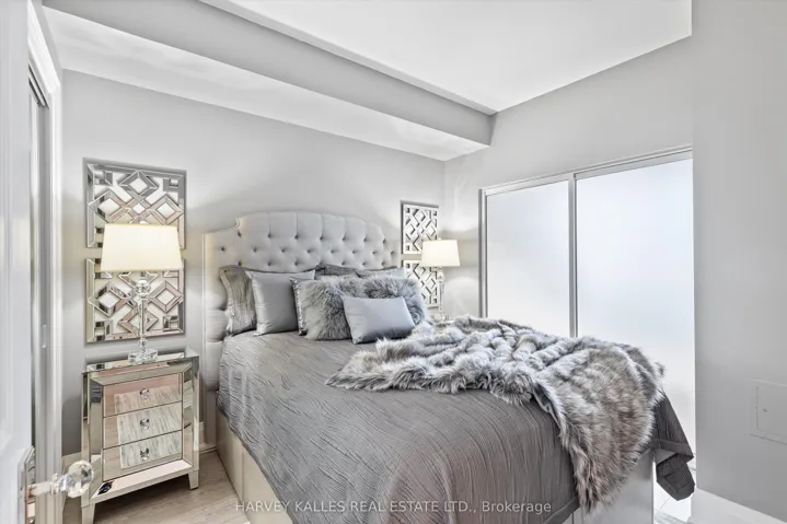 Welcome to Suite 1205 at the prestigious boutique building Elev’n 21! This spectacular, fully renovated condo has been completely reimagined back to the studs, featuring 9′ smooth ceilings with pot lights, premium finishes, and custom furnishings throughout. Offering 1 spacious bedroom + large den with French doors & floor to ceiling windows (currently used as a second bedroom) and 1 stylishly upgraded bathroom, this suite is the epitome of turn-key luxury living. Enjoy stainless steel stove, built-in microwave, premium panelled fridge & dishwasher, reverse osmosis water system, quartz countertop with waterfall feature on island, stacked washer & dryer in-suite laundry, and a private balcony.This unique offering comes fully furnished by Kimberly Capone Interiors & Direct Interiors, including: Queen bed (c/w mattress) with built-in storage & double bed (w/o mattress) with built-in storage; Custom sectional sofa with pull-out queen mattress, wall mounted TV & custom built-in corner cabinetry; Stylish storage ottoman, 4 bar stools, reverse osmosis water system, large luxury decorative entry mirror; 2 kitchen chandeliers, 1 hallway chandelier & 2 wall sconces in den; Ceramic floor and wall tiled bathroom with quartz counter, built-in shower niche & glass shower door; Upgraded door handles throughout; Custom window coverings – fabric blinds; Balcony set with table & 2 chairs; 1 parking spot + locker included. Located in one of Toronto’s most sought-after neighbourhoods with a Walk Score of 99 and Transit Score of 100… steps to Yorkville, U of T, TTC, shopping, dining, and more. Pride of ownership throughout – pristine, stylish, and truly turnkey!