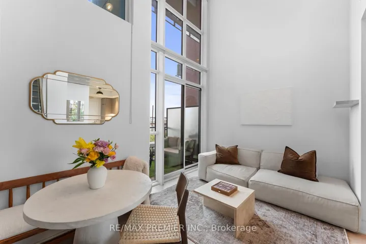 Highly coveted Liberty Market Lofts! Soaring 17-ft ceilings, floor-to-ceiling windows, and bright south-facing views create a home full of character and pride. This premier layout showcases modern finishes, a new kitchen countertop and backsplash, integrated appliances, generous closet space, and a spacious balcony. Building amenities include a 24-hour concierge, lobby art gallery, gym, party room, guest suites, and a pet-washing spa.