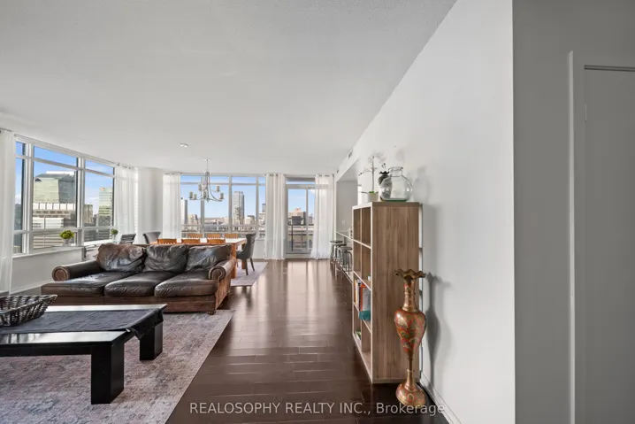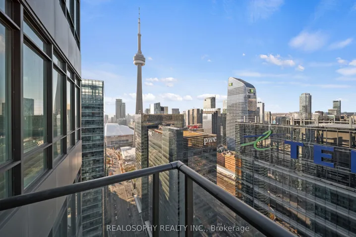Welcome to this stunning 2-bed, 2-bath corner-unit condo in the heart of downtown Toronto-where comfort, convenience, and lifestyle come together beautifully. Perfectly situated just steps from the Scotiabank Arena, Rogers Centre, Union GO Station, Harbourfront, the CN Tower, and an endless selection of shops and restaurants, this home places you in the centre of everything the city has to offer.Inside, you’re greeted with a bright and airy open-concept layout enhanced by expansive windows that fill the space with natural light. The spacious kitchen is designed for both cooking and entertaining, featuring full-sized appliances, ample counter space, a breakfast bar, and seamless flow into the living and dining areas. From here, walk out to the first of two private balconies-ideal for morning coffees, fresh air, or simply taking in the northern city views, including a clear sightline of the iconic CN Tower. The thoughtfully designed floor plan offers privacy and functionality. The primary bedroom acts as a serene retreat with soft carpet for added comfort. It is complete with a walk-in closet, a private 4-piece ensuite bathroom, and its own dedicated balcony. The second bedroom is generously sized, and easy access to the second full 4-piece bathroom. Additional conveniences include an ensuite laundry room with extra storage, making day-to-day living smooth and efficient. Hardwood floors run throughout the main living areas, adding warmth and refinement, while the corner-unit layout provides exceptional natural light and northern city views. Modern living, unbeatable walkability, and captivating views-this is Toronto living at its finest.