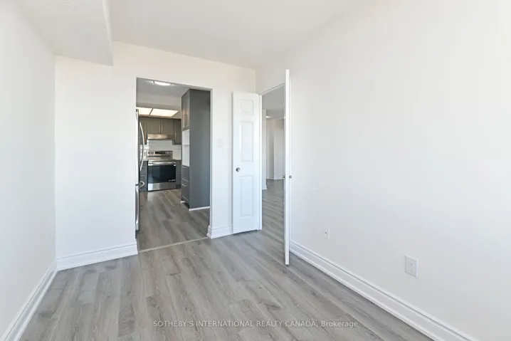 Elevate Your Lifestyle in a Sought-After Building. Discover approximately 810 sq. ft. of thoughtfully designed living space in this freshly painted and renovated 1-bedroom plus office, 1-bathroom condo. Move-in ready. Open concept Living/Dining Rooms. The new kitchen features sleek cabinetry and stainless steel appliances, complemented by additional stainless steel appliances in the laundry room. The bathroom has been updated. Modern vinyl flooring throughout brings a fresh, contemporary feel to the entire suite. The spacious layout offers versatility with the option to reimagine the office as an expanded kitchen area. Oversized windows, recently replaced, flood the home with natural light and frame unobstructed city views. The expansive bedroom is equally impressive, with a large picture window and generous closet space. Additional conveniences include ensuite laundry with extra storage, an oversized parking space and a separate locker. This well maintained building has undergone extensive upgrades, including a completed generator project, fresh exterior paint, new landscaping along the north side park area, and new carpets, tiles, and wallpaper currently being installed in the corridors. More enhancements for the common elements are being planned. There is an electric car charging station in the underground parking which is shared with the residents of the neighbouring building. Residents need to open their own account and pay at the station just like any other charging station. Amenities include a 24-hour concierge, Sabbath elevator, visitor parking, fully equipped gym, and sauna. Ideally located steps from TTC, major highways, Lawrence Plaza, shops, restaurants, and parks, this condo offers unmatched value in a prime location. Entrance lobby and corridors have undergone a complete renovation. The current photo of the lobby represents the former lobby. Some photos have been virtually staged.
