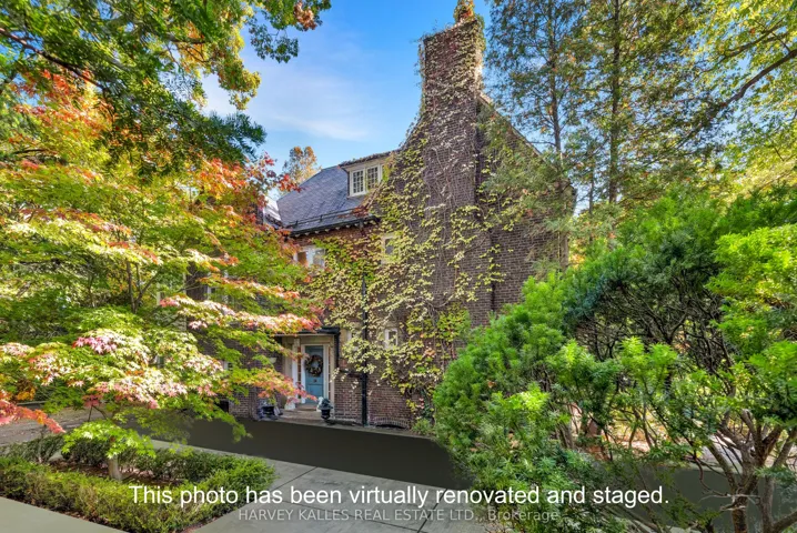 Rare opportunity to restore a distinguished historic Rosedale residence to its original architectural integrity & create a bespoke home of exceptional grace & distinction, ideally positioned on one of Rosedale’s most admired & private streets. Set on a wooded ravine-adjacent property surrounded by mature trees & prestigious estate homes, this residence offers a tranquil & picturesque setting that seamlessly blends privacy, prestige, & enduring connection to nature. The natural ravine backdrop provides year-round beauty & sense of retreat rarely found so close to the city’s core. Classic proportions & refined period details define the home, including original hardwood floors, soaring ceilings, hand-carved mantlepieces, elaborate plaster crown mouldings, & a richly paneled library that reflects timeless craftsmanship. Grand principal rooms & elegant floor plan create exceptional flow & present rare canvas for thoughtful restoration & modern luxury. Location is equally compelling. Chorley Park & Craigleigh Gardens offer scenic hiking, jogging, & cycling trails that lead directly to the Evergreen Brick Works & connect to the extensive Don Valley park system. Nearby Rosedale Park & Ramsden Park provide tennis courts, skating rinks, & wading pools, while Mooredale House is a popular community centre. Summerhill Market, & fine shopping, dining, & upscale boutiques are found along the vibrant Yonge Street corridor. Public transit is readily available Motorists enjoy quick access to the Don Valley & downtown financial district. Some of Toronto’s finest public & private schools are within walking distance or easily accessible by transit. Celebrated as one of the city’s most prestigious neighbourhoods, Rosedale is renowned for its preserved architectural heritage, natural beauty, & exceptional quality of life. 7 Beaumont Road awaits the discerning buyer with vision-one who values history, artistry, and the enduring beauty of classical architecture. Photos virtually staged.