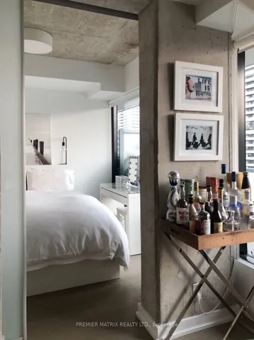 A Complete Show Stopper!! Perfect Opportunity For First Time Buyers Or For A City Pad! Cozy Bright 1 Bdrm Suite With a Massive South Facing Balcony W/ Gas Line For Bbq. Floor To Ceiling Windows, Exposed Concrete Feature Walls, Frosted Glass Sliding Bdrm Door, Engineered Hardwood Floors, Custom Designed European Style Kitchen, Stone Counters, S/S Appliances. Beautiful Amenities Including Rooftop Pool And Party Room, Fitness Centre, & Bike Storage. Trendy King West Neighbourhood. Walk To All The Conveniences & The Best Of Downtown Shopping, Restaurants, Nightlife & More.