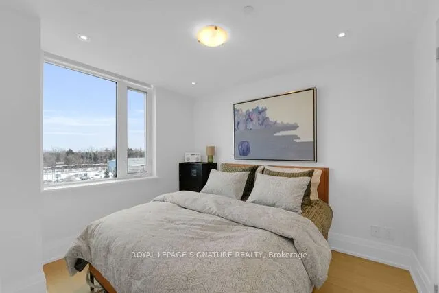 Where Leaside meets Luxury. Welcome to The Upper House Condos. This bright and spacious 1 + 1 bedroom, 1 bathroom suite offers 653 sqft of thoughtfully designed, open-concept living, walk out to your private 52 sq ft balcony. With soaring 10 ceilings, wide-plank floors, potlights, 7″ baseboards, plenty of closet space ( each with its own custom built-in), ensuite laundry and an abundance of natural light pouring in from the sunny south facing exposure. The sleek kitchen is equipped with custom cabinetry, beautiful countertops, premium appliances and an island perfect for entertaining. The space flows seamlessly into the main living area and den, ideal for relaxing at home or entertaining. The primary bdrm is a true retreat with a full double closet. with custom built-ins and plenty of storage. This boutique mid-rise building offers a refined living experience with only 66+ units spread across 7 floors. With some of the friendliest neighbours in the city and a full-time cleaner on site, this building is exceptionally well-maintained, with a great community vibe. Residents enjoy access to a range of upscale amenities, including: Concierge Service, Fitness Centre, Rooftop Terrace, Party Room, Pet Spa, Guest Suite and Plenty of Guest Parking. The building’s design emphasizes privacy and luxury, with thoughtfully curated common areas and secure underground parking. 25 Malcolm Road is situated in the heart of Toronto’s coveted Leaside neighbourhood, with unmatched convenience to top-rated schools, parks, cafes, shops and the new LRT. (42017617)