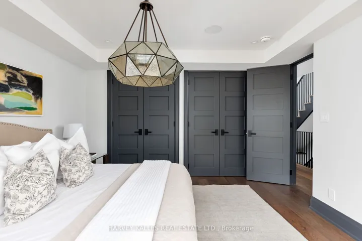 Neighbourhood-defining interior design by Glen Peloso with Decorators and Designers Association of Canada hosting their Design Showcase this March at the property. Discover Toronto’s take on a New York-inspired industrial soft loft. Builders went to committee and created this Detached spectacular sprawling and carefully crafted family home offering nearly 4,500 sq ft of living space across four levels, with approximately 3,100 sq ft above grade, set on a 27.98-ft wide lot. The Massive Detached garage backs onto a Laneway that begs for a coach house. The bright, wide-plank main level features an east-facing dining area flooded with natural light, flowing into a custom chef’s kitchen with oversized island, separate built-in refrigerator and freezer, bespoke lighting, and exceptional storage. Factory-inspired glass walls and double doors lead to an elegant family room with fireplace, custom built-ins, and a full wall of glass opening to a large outdoor deck. A rear mudroom with built-in seating and storage adds everyday functionality. Powder room finished with custom New York streetscape wallpaper.The primary retreat occupies the entire third floor, introduced by a dramatic landing with an east-facing sunroom wrapped in floor-to-ceiling windows, complete with coffee station and wet bar. Step out to a city-skyline views from the observation deck. The primary bedroom features abundant natural light, custom built-ins, and fireplace, complemented by a spa-like ensuite and an exceptional walk-in dressing room with centre island, skylight, and extensive shelving.The second floor offers a large bedroom with private 4-pc ensuite, two additional generous bedrooms with balcony access, a full laundry & second utility room, and an additional 4-pc bath.The lower level spans approximately 1,200 sq ft, featuring a substantial recreation room, glass-enclosed wine cellar, nanny or guest suite, 4-pc bath, and cantina. 2 AC units and 2 Heat furnaces help balance your atmosphere.