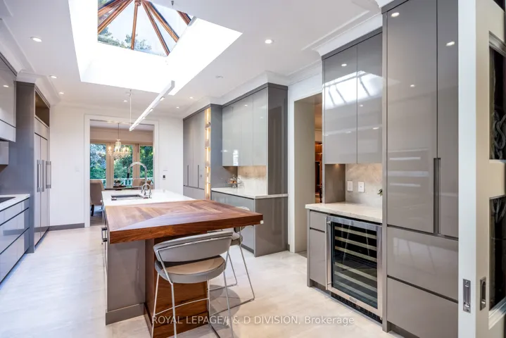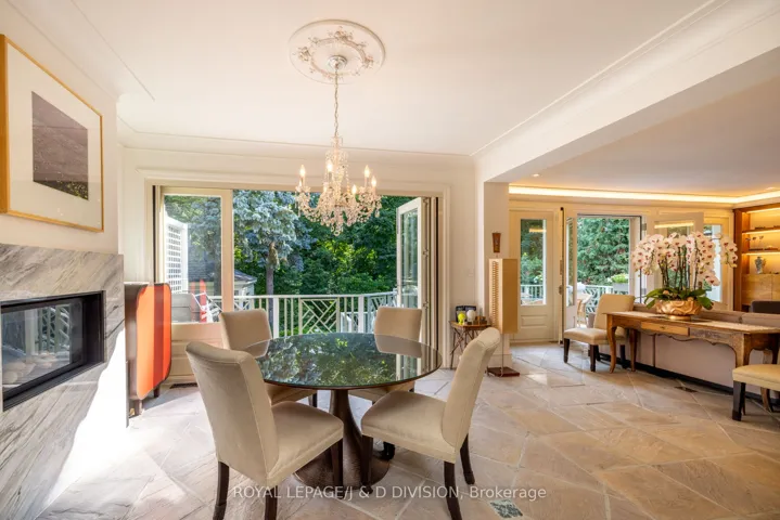 A rare opportunity to own a secluded ravine residence, gracefully set back from the street on an expansive 1/2 acre+ lot in one of Toronto’s most private enclaves. Expansive, L-shaped lot, with gunite pool set to the side, and a home with 5,200+ square feet above grade that blends transitional design with timeless style. Surrounded by mature trees & a picturesque ravine, this estate offers the feeling of country living. Grand interior foyer with two-storey south windows, flagstone floors, and a sweeping staircase. The main floor is designed to entertain from formal garden views, gracious living and dining rooms, a chef’s kitchen featuring an atrium skylight, Tahj Mahal Quartzite island, walnut details, and top-of-the-line appliances, connecting to a sun-filled breakfast room with fireplace and Nano doors that open to the outside. Family room with detailed millwork, walk out to a deck and panoramic views over the ravine and pool. Main floor also includes large home office off the side hallway, powder room, guest/nanny bedroom, 3-piece bath, laundry and mud room with access to the double garage. Second floor is expansive with five generous sized bedrooms, three bathrooms including a primary suite with sitting area, fireplace, spa-inspired ensuite, and tranquil views of the gardens and ravine. Lower level features upgraded mechanics, bright, playful recreation room with built-ins, cozy reading nook, fireplace, 3-piece bath, and walk-out access to the pool. The exquisite garden is designed by landscape architect Ron Holbrook, featured in Canadian House & Home and included in local garden tours. Highlights include a charming gazebo, potter’s shed, large grass area for children to play, a deck ideal for al fresco dining and summer entertaining with sun awning, gunite pool with hot tub-surrounded by complete privacy, is embraced by the ravine and lush landscaping. Unmatched privacy so close to top schools, walk to Yonge Street amenities, and steps to Rosedale Golf Club.