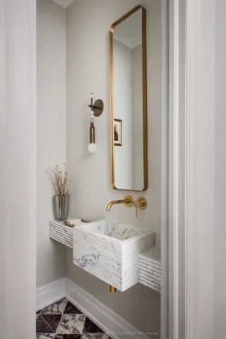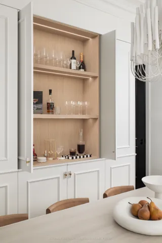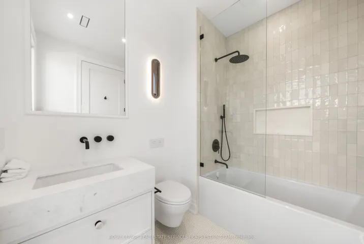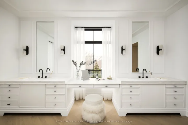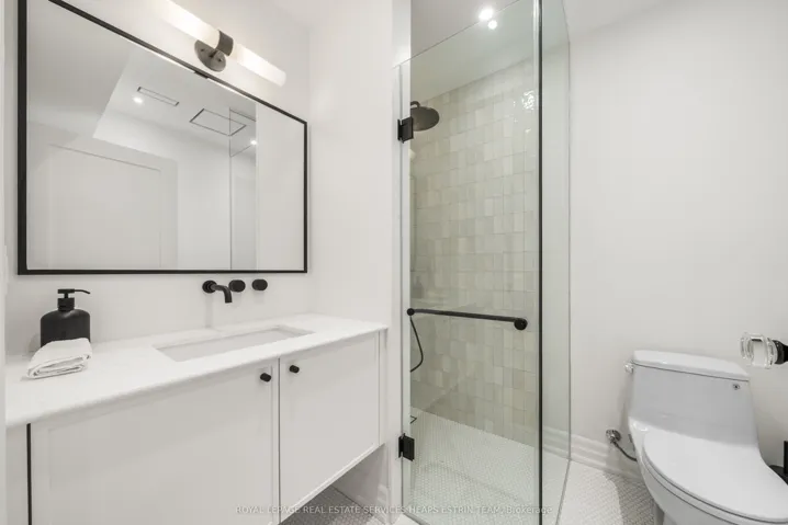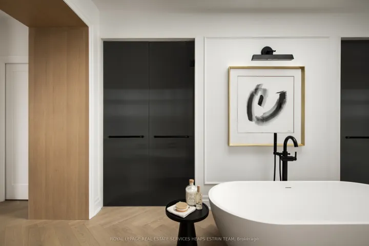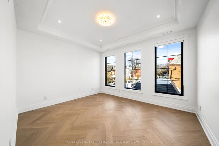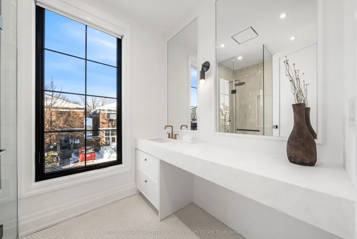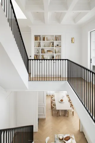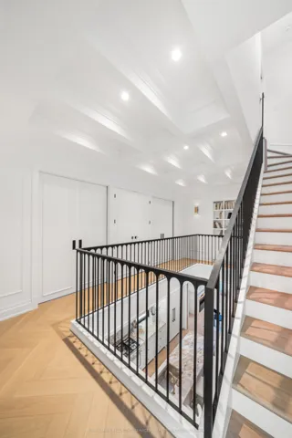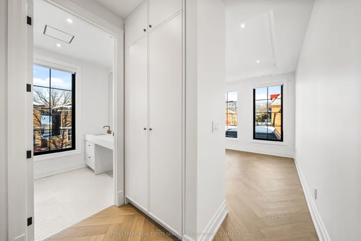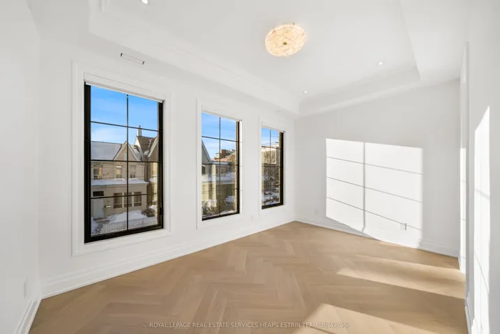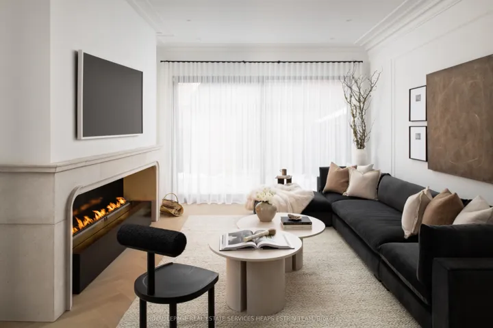 In a city celebrated for its eclectic design and dynamic spirit, this breathtaking residence stands alone, a showpiece of contemporary design by award-winning Ancerl Studio. From the moment you arrive, its distinctive brick façade, copper detailing, and privately fenced corner lot evoke the quiet sophistication of a New York brownstone, seamlessly set within a vibrant Toronto neighbourhood. Inside, a world of extraordinary detail unfolds, a fusion of Parisian refinement and metropolitan sophistication. A soaring two-storey mezzanine at the center sets a dramatic tone, while custom woodwork and sculptural lines anchor the home in both scale and intimacy. Every inch has been curated with intention, every surface designed to delight. Custom furnishings, sweeping sightlines, and meticulously selected materials create a narrative of quiet luxury and timeless design. At its heart, this three-storey home with three plus one bedrooms and five bathrooms elevates both daily life and entertaining. The third level is an indulgent primary suite, complete with a walk-through dressing room, five-piece spa-like ensuite, marble fireplace, and private balcony with striking CN Tower views, an ever-present reminder of the city’s pulse just beyond the serenity. The lower level offers a generous recreation room with natural light, private guest bedroom, full bathroom, a second laundry, and ample storage, all with the same attention to detail. Outdoors, landscaped rear gardens offer a tranquil escape. A stone patio off the main level creates an ideal setting for indoor-outdoor living. The detached garage via laneway completes this urban sanctuary with seamless functionality. Every element reflects a commitment to design excellence and thoughtful craftsmanship, a singular opportunity to live beautifully in the heart of the city. **FENG SHUI certified by Master PAUL NG** *5 Wealth centers, plus powerful energy for Health & Relationships*