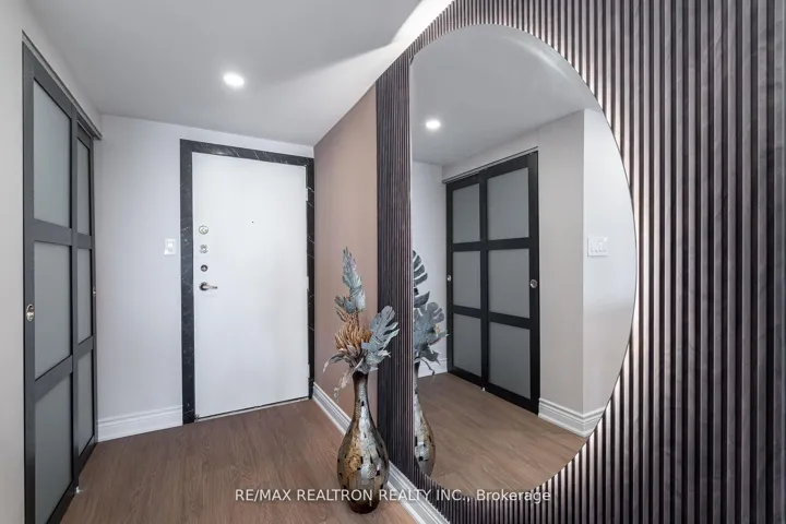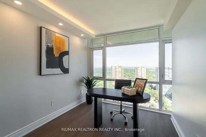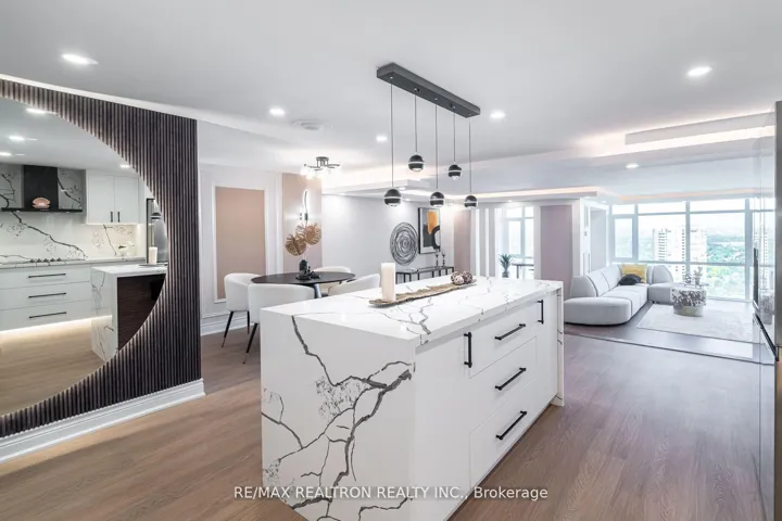One-of-a-kind, fully renovated suite in the prestigious Skymark II by Tridel! This spacious2-bedroom + den, 2-bath home boasts a rare separate laundry room, a sleek open-concept layout,and a custom kitchen with quartz countertops, island, and premium cabinetry. Designer upgradesinclude porcelain-tiled bathrooms with modern vanities, crown moldings, LED pot lights, and anelegant electric fireplace in the family room. The primary bedroom features a walk-in closet,while the versatile den makes a perfect home office. Includes 2 parking spots. Enjoyresort-style amenities: indoor/outdoor pools, tennis, squash, golf simulator, gym, billiards,media room, and beautifully landscaped gardens. Hallway renovations scheduled for summer 2025.Prime location steps to TTC, Fairview Mall, shopping, dining, and major highways. A truegem-move in and enjoy!