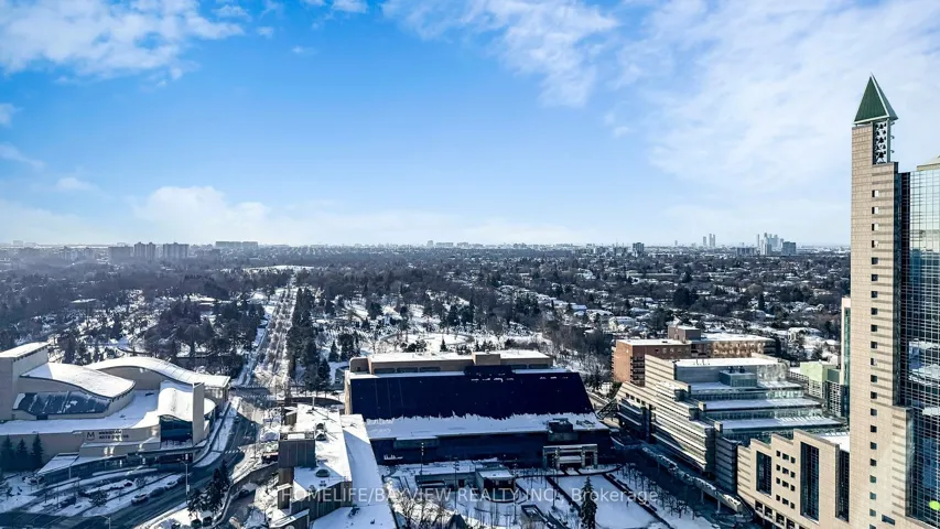 Prime North York Location. Rare opportunity for a bright, spacious, one of a kind unit in a luxury Monarch building. High-floor, 9 foot ceiling suite features a unique layout with unobstructed skyline views overlooking Mel Lastman Square and the skating rink. Enjoy sunny floor-to-ceiling windows, and a large wraparound terrace with walk-outs from both the living room and bedroom. Freshly painted throughout and offers upgraded granite countertops, laminate flooring, brand-new never-used washer and dryer, and all new window blinds. Exceptional resort-style amenities include 24-hour concierge, indoor pool, hot tub, fully equipped gym, movie theatre, party room, car wash, internet café, and garden BBQ area. Unbeatable location just a 3-minute walk to North York Subway Station, Empress Walk, restaurants, shops, supermarkets, library, pharmacy, The Keg, Cineplex, and with quick access to Highway 401.