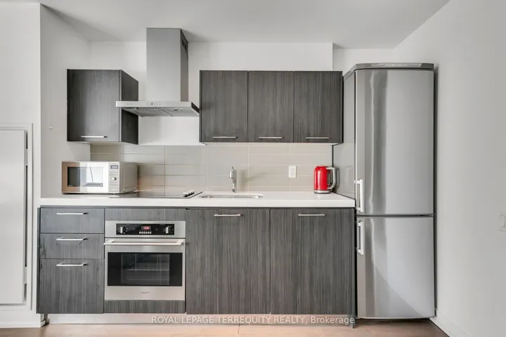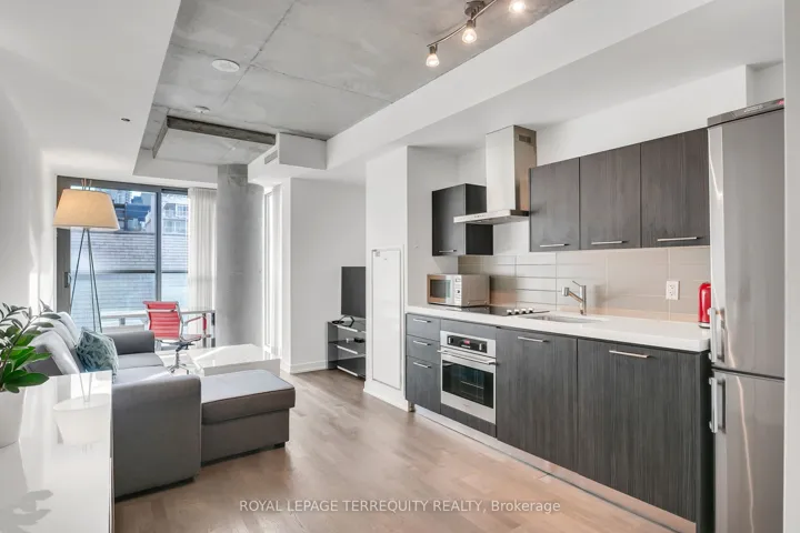 Welcome to FASHION HOUSE, a much coveted boutique building located in prime King West, just west of Spadina. Fabulous 573 sq ft well designed studio suite with defined bedroom area, with room for entertaining and work-from-home space. This loft style suite has high concrete ceilings, with luxury finishes throughout. Quality engineered hardwood floor run through all principal rooms, the kitchen is open concept with built-in appliances,. The suite is always bright, with floor to ceiling windows with juliette balcony that allows ample natural light and fresh air. The primary bedroom has a large double closet with closet organizers, another closet in the main hallway. This stylish boutique building has superb amenities: 24 hr concierge, well equipped gym, party/meeting room, and a stunning rooftop infinity pool and terrace with incredible views of the downtown skyline! Ideal King West location, just steps to transit, shops, top restaurants, trendy bars, shopping and more. Modest maintenance fees include water, heat, A/C and a storage locker. Don’t miss this fabulous opportunity…perfect for a first-time buyer or downtown pied-a-terre for those living out of the city. Welcome home !!