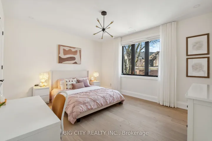 Architecturally significant transitional masterpiece in the heart of Lawrence Park. Designed by acclaimed architectural designer, this striking 3-storey residence boasts a timeless limestone facade and a refined interior that seamlessly blends modern elegance with classic detail. Featuring 4 spacious bedrooms, 5 opulent bathrooms, and natural white oak flooring throughout, this home is a statement in understated luxury.A grand foyer welcomes you with floor-to-ceiling aluminum windows and a Venetian plaster fireplace, setting the tone for the home’s sophisticated ambiance. The chef’s kitchen is a true showpiece, complete with custom cabinetry, marble walls, and a statement island, flowing effortlessly into the sun-filled south-facing family room with soaring ceilings, curtain wall glazing, and a dramatic marble fireplace.Upstairs, the second floor offers three light-filled bedrooms and a designer laundry room. The private third-floor primary retreat is a sanctuary featuring a spa-inspired ensuite, tea/coffee station, and an integrated 5.1 home theatre. The lower level is designed for both lifestyle and function, featuring a fully equipped gym, catering kitchen, additional bedroom, staff quarters, and a 4-stop elevator. The exterior is equally impressive, with a landscaped white birch grove in the front and a tiered backyard oasis offering a heated patio, built-in BBQ, dining/lounge zones, and a hot tub perfect for entertaining.