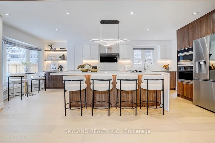 An exceptional fully renovated luxury residence located in one of North York’s most convenient and desirable neighborhoods. Offering over 4,000 sq. ft. of refined living space, this home has been meticulously remodeled from top to bottom with premium finishes throughout. Featuring four generously sized bedrooms on the second floor and two additional bedrooms & full kitchen in the finished basement with separate entrance potential, the layout is ideal for upscale family living or multi-generational use. The main and second floors showcase 8-inch engineered hardwood flooring, complemented by premium laminate flooring in the finished basement. Designed for elevated living, the home includes two laundry rooms, one on upper level and one in basement, for ultimate convenience. The chef-inspired open-concept kitchen on ground floor is a statement piece, showcasing quartz countertops and backsplash, an oversized island with sitting area, and premium built-in cooktop, oven and digital wine cooler. Exterior upgrades include new windows, new garage door, new entrance door, new fence, new deck, new interlock, and fresh sod. Ample parking with a 2-car attached garage and 3-car driveway. Ideally located close to transit, shopping, and major highways, this exceptional home delivers luxury, privacy, and everyday convenience that you do not want to miss.