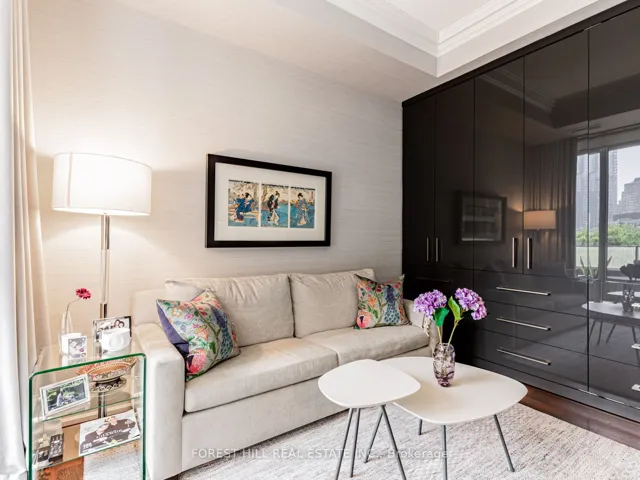 Immerse yourself in refined luxury at The Florian, one of the City’s most prestigious full-service residences. This sun-drenched suite offers a thoughtfully designed layout featuring two spacious bedrooms with direct balcony access, two spa-like bathrooms, and a chef’s inspired kitchen with breakfast bar. The open concept living and dining area is anchored by a gas fireplace and bathed in natural sunlight, flowing seamlessly onto a generous south facing balcony. Custom built-ins throughout the suite provide abundant, well integrated storage, adding everyday ease to elegant living. A large ensuite laundry room completes the space. Renowned for exceptional service The Florian offers 24 hour concierge, valet parking, and many upscale amenities including a state of the art fitness centre, a saltwater pool and a outdoor terrace. This is hotel style living at its finest and every detail is designed for an elevated lifestyle. This highly sought after residence is ideally located in prime Yorkville, just steps from a curated collection of exclusive boutiques and fine dining, inviting you to indulge and explore.