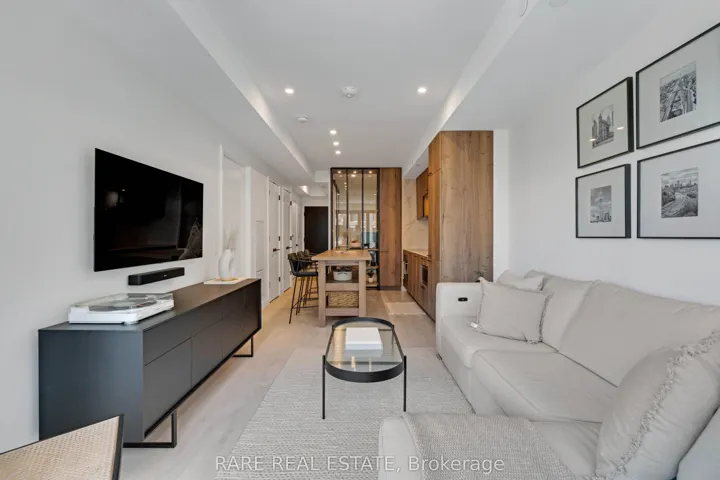 Perched above the city at 505 Richmond Street West, Residence 903 at Waterworks offers a rare blend of thoughtful design and elevated luxury, just steps from the vibrant energy of King West. This impeccably designed two-bedroom, one-bathroom suite showcases a highly functional layout, where every space feels intentional and effortlessly livable. The open-concept living and dining area flows seamlessly into a true chef’s kitchen, complete with premium integrated appliances, and custom cabinetry, crafted for both everyday ease and elevated entertaining. Expansive windows flood the suite with natural light and frame captivating city views, including a stunning view of the iconic CN Tower. The overall effect is polished, sophisticated, and undeniably luxurious. With parking and a private locker included, this is refined downtown living at one of Toronto’s most coveted addresses.