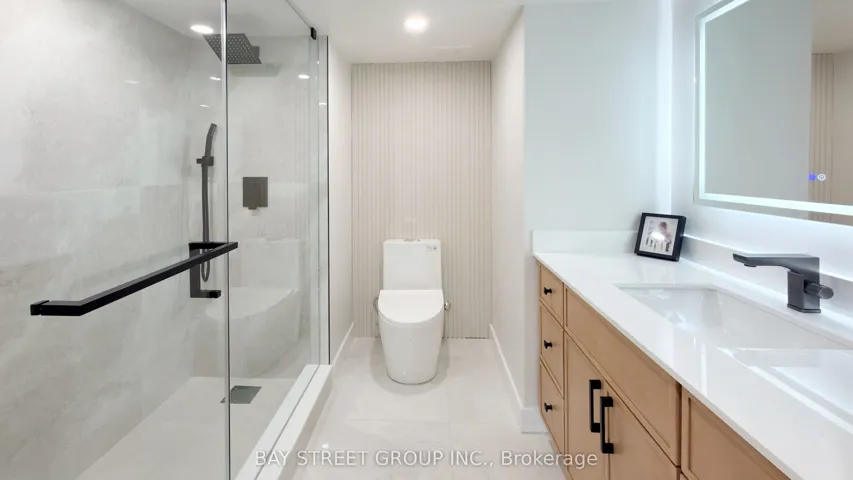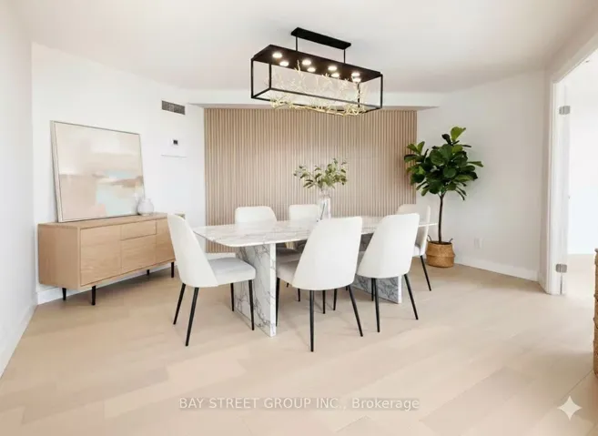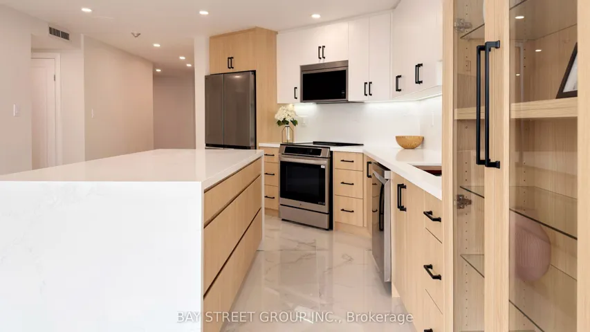 Refined Living At The Classics of Skymark In The Heart Of Toronto.Completely reimagined with a modern minimalist design, this bright open-concept residence offers sweeping southeast views through floor-to-ceiling windows and a rare, spacious layout featuring 3 bedrooms with a den and a separate dining area, and a large spacious living room – ideal for both everyday comfort and elegant entertaining.A Kennedy fireplace anchors the living space with warmth and style. The contemporary kitchen is designed for function and beauty, showcasing a waterfall-edge island, quartz countertops, built-in LG stainless steel appliances, sleek digital display faucets, and elegant undermount lighting beneath the kitchen cabinetry. Premium engineered hardwood flooring runs throughout, complemented by custom built-in closets and a spa-inspired primary bathroom finished with quartz accent walls, quartz surfaces, and custom vanities.This home includes two parking spaces, adding exceptional convenience and value.Perfectly situated near top-rated schools, major shopping destinations, transit, and Highway 404. Residents enjoy outstanding resort-style amenities including indoor and outdoor pools, fitness centre, squash and tennis courts, library, guest suite, visitor parking, and 24-hour gated security.A rare opportunity to own a thoughtfully designed luxury residence in a premier Toronto community.
