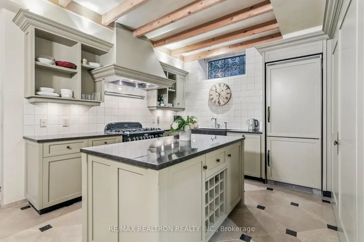 Nestled in the prestigious Yorkville neighbourhood, this exquisite renovated 1880s heritage townhouse masterfully blends the charm of an English country cottage with modern luxury. Showcasing the highest standards of craftsmanship, this three-level residence offers over 2,000 square feet of refined living space, where warmth, character, and European-inspired sophistication abound. The thoughtfully designed interior features antique elm flooring, limestone gas fireplaces, custom millwork and soaring ceilings that flood the home with natural light. Every detail reflects a commitment to timeless quality and elegance. The main floor welcomes you with a gracious foyer leading to a formal living room highlighted by a bay window and limestone fireplace. A bespoke library, complete with intricate millwork and built-ins, opens through French doors onto a balcony overlooking the serene greenery of Ramsden Park. A stylish powder room with imported Parisian wainscoting adds to the charm of the home. The home features a country-style eat-in kitchen, equipped with an iconic AGA stove, walk-in pantry, Belgian blue stone countertops, custom cabinetry, elm ceiling beams, and heated French limestone floors. The adjacent dining and family rooms (or optional guest bedroom) flows into a landscaped, French-inspired garden. The serene primary bedroom features custom built-ins, a walk-in closet. There is a spa-like five-piece bathroom with Carrara marble and limestone. The second bedroom features wood-panelled cathedral ceilings, skylight, and Juliette balcony overlooking treetops, offering a tranquil hideaway. Designed with flexibility in mind, the home accommodates 2 to 4 bedrooms and includes the rare convenience of two-car parking via the laneway. Ideally located just steps from Yorkville’s renowned boutiques, fine dining, top-rated schools, parks and has easy access to Rosedale Subway.