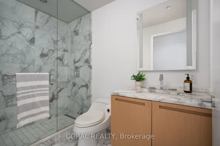 Experience elevated living in this beautifully appointed residence with sought-after NW exposure, offering abundant natural light and stunning sunset views. Freshly painted and professionally deep cleaned, this suite is truly move-in ready. Designed with refined taste, the home features elegant herringbone hardwood floors and a chef-inspired Boffi kitchen complete with an integrated Sub-Zero fridge, Miele built-in appliances, and a gas cooktop-perfect for both everyday living and entertaining. A sleek wine/beverage cooler adds an extra touch of sophistication. Unwind in luxurious Carrara marble-clad bathrooms and enjoy the convenience of custom walk-in closets in both bedrooms and hallway storage, along with a spacious walk-in closet in the primary suite. A dedicated laundry room provides added functionality and ease. Indulge in a hotel-inspired lifestyle with full-service amenities including a 24-hour concierge and doorman, spa access, and full access to the Miraj Hammam Spa (all on 5th floor). Wellness offerings include a 24-hour fitness center, yoga studio with scheduled classes, and a 20-metre indoor lap pool, hot tub, infrared sauna, and steam rooms. Enjoy in-building access to several high-end dining options, including The Lobby Lounge, Bosk Restaurant, and Mott32, along with hotel bar & lounge service and room service at your convenience.Complete with 1 parking space and 1 locker. Ace Carwash & detailing conveniently located in P1. A rare opportunity to own a sophisticated home that seamlessly blends luxury, comfort, and five-star living.