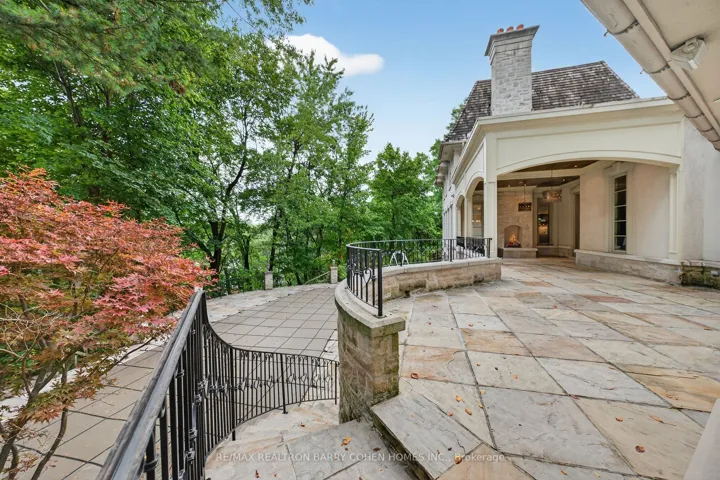 Backs Onto Ravine! Perched gracefully at the highest point of Hoggs Hollow, this French Château inspired masterpiece sits on a spectacular 239.08 x 207.81 ft ravine lot (approx. 1.14 acres). Designed by Dee Dee Taylor Hannah and built by award-winning builder Michael Rossini, this timeless stone estate offers over 10,000 sq.ft. of luxurious living space, blending European elegance with modern comfort. The homes distinctive curved and symmetrical design showcases architectural artistry rarely seen today. Featuring 4 bedrooms with ensuites, 9 washrooms, and a 3-car garage with a circular driveway accommodating up to 15 cars, all principal rooms face west, overlooking the serene ravine. A grand marble foyer, curved hallways, and custom millwork opens to elegant living and dining rooms that walk out to the ravine and garden. Two libraries on main floor, five fireplaces, built-in speakers, 10-ft ceilings, and hardwood floors throughout. The gourmet kitchen with double granite islands and an open-concept family room with motorized curtains creates a warm and inviting space for entertaining.Step out to a 700 sq.ft. patio with outdoor fireplace and panoramic ravine views. The primary suite features a lavish 9-piece ensuite, his & her walk-in closets, and heated bathroom floors. The walk-out lower level wth heated floors includes a home theatre, wine cellar, sauna, wet bar, nanny/guest ensuite, and a recreation room with fireplace opening directly to the backyard oasis.The heated concrete pool with cascading waterfall, framed by mature trees, creates a private, resort-like retreat. A rare offering combining elegance, privacy, and tranquility, just moments from the Granite Club, top private schools (Crescent, TFS, Havergal, UCC, BSS), fine dining, and Rosedale & Don Valley Golf Clubs.A true statement of taste, craftsmanship, and enduring luxury in one of Torontos most prestigious enclaves.
