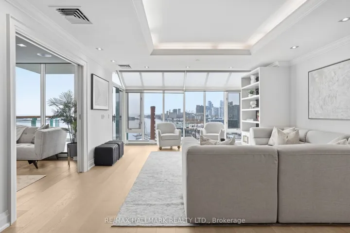 Welcome to The Historic Terminal Building at 211 Queens Quay W unit 1005. With amazing South West views looking out onto Lake Ontario and Billy Bishop Airport you can relax on your private terrace watching the sunset! This spacious 1500+ sq ft renovated 2 bed/2 bath luxury boutique condo has a beautiful updated chefs kitchen featuring premium appliances with marble tile flooring that extends through the kitchen and foyer with ample storage. Large primary bedroom with tray ceiling, walk in closet and a fully renovated spa inspired 5-piece ensuite bathroom. Engineered hardwood floors flow seamlessly throughout the main living areas, adding warmth and elegance to the brightly lite space. Set in the premier Harbourfront location, steps to the lake, transit, dining, and the Financial District with an unbeatable downtown lifestyle. Residents enjoy 24-hour concierge, indoor pool and gardens.