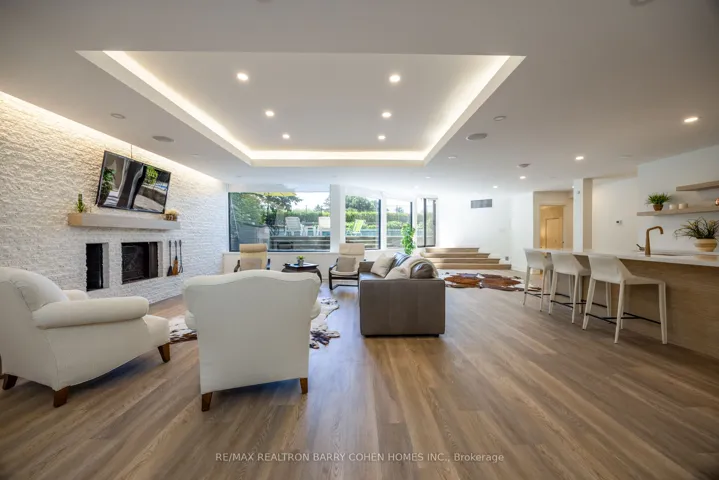 An iconic showcase of refined design, upgraded and perfectly positioned in the prestigious Windfields neighbourhood, this exceptional residence offers unparalleled privacy and a seamless connection to the natural beauty of Windfields Park. Bold Brutalist architecture creates a dramatic, light-filled interior with floor-to-ceiling picture windows on every level, adorned with custom Belgian linen window coverings. An expansive second-floor sundeck provides sweeping park views and is accessible from all four bedrooms, while the lower level opens effortlessly to lush rear gardens. The main floor is designed for elegant entertaining, featuring formal living and dining areas, a sunken family room, a chef’s kitchen with servery, and walk-outs to a flagstone patio and shimmering concrete pool. A sculptural open-riser staircase enhances the flow of natural light throughout the home. The lower level offers a luxurious retreat with a fifth bedroom, wet bar, recreation room with wood-burning fireplace, sauna, and floor-to-ceiling garden views with walk-up access to the patio. A three-car garage and circular driveway accommodating 8+ vehicles provide ultimate convenience, while proximity to top schools, 401/404/DVP, and the exclusive Granite Club ensure unparalleled lifestyle ease. A rare urban sanctuary, this home combines dramatic design, refined luxury, and a serene parkside setting for a truly extraordinary living experience.