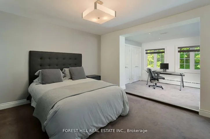 This is the one! 34 Forest Ridge Drive checks all your boxes beginning with its stunning curb appeal. Situated on a 59′ wide lot on this quiet and most coveted street in upper Forest Hill Village, this sophisticated home features 4+1 bedrooms, a main floor office, a main floor family room and a main floor powder room. The welcoming foyer with large closet invites you into an elegant living space where you can relax and entertain. The living room is bright with a gas fireplace and views of the stunning back yard with pool and beautiful garden. The stylish dining area is spacious enough for large dinner parties yet intimate enough for smaller ones. The incredible eat-in kitchen features stainless steel appliances, Caesarstone countertops, two built-in Wolf gas ranges, two Miele dishwashers, a Sub-Zero fridge, two built-in warming drawers, Avantgarde wine cooler and more. The main floor is hardwood throughout with beautiful views overlooking the backyard pool and garden. Upstairs the gorgeous large primary bedroom has a vaulted ceiling, a sizeable seating area and a six-piece en-suite with heated floors. There is a walk-in closet and two double closets as well as abundant additional storage in the ensuite. There are three additional upstairs bedrooms. Bedroom 2 features a tandem room and 4 double closets with built-in storage. Bedrooms 3 and 4 each has two double closets with built-in storage. The basement rec room is large with good ceiling height. There are an additional bedroom, bathroom and a cedar closet on the lower level. The laundry room is spacious and storage is abundant. This is a great location with close TTC and highway access. Walking distance to shops, good schools, parks, the Beltline Trail, Cedarvale Ravine and more.