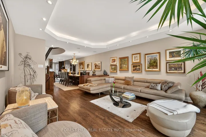 Welcome to 252 Spadina Road, a fully updated freehold 3+1 bedroom, 5 bathroom townhome in prestigious Castle Hill at the foot of Casa Loma. Offering over 3,400 sq ft of finished living space across four levels, this exceptional residence blends timeless architecture with refined contemporary design. Overlooking Casa Loma, this move-in-ready home delivers rare scale and sophistication in one of Toronto’s most iconic neighbourhoods.The main level showcases soaring and coffered ceilings, crown moulding throughout, wide-plank oak floors, custom built-ins, pot lights, California shutters, and integrated surround sound. The open-concept living and dining areas are designed for elevated entertaining. A custom chef’s galley-style kitchen features premium appliances, abundant cabinetry, and a breakfast bar, with a seamless walkout to a private terrace for effortless indoor-outdoor living.A striking panoramic design PVE elevator provides access from the basement to the third floor. The second level offers a spacious family room with wood-burning fireplace and built-ins, a well-sized bedroom, full bath, and convenient second-floor laundry.The third floor features a dramatic two-storey primary retreat with 17-foot ceilings and skylights. A loft-style upper lounge leads to a private rooftop terrace. The suite includes a spa-inspired ensuite and his-and-hers walk-in closets with organizers. An additional bedroom with ensuite completes this level.The lower level offers an above-grade bedroom with large windows, full bath, private sauna, pantry, and flexible living space, plus direct access to a spacious two-car garage with ample storage.Freehold with association fee covering landscaping and snow removal. Steps to Dupont Subway Station, Casa Loma, Yorkville, Forest Hill Village, parks, and top private schools including UCC and BSS.