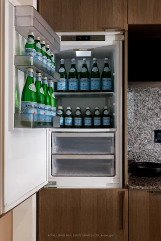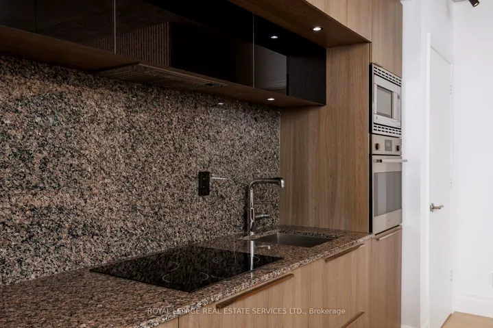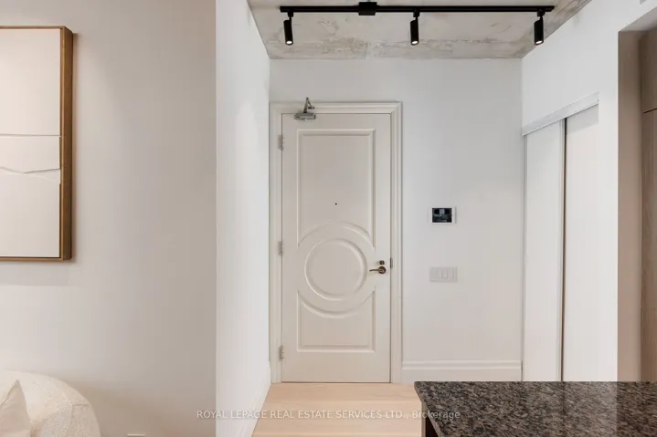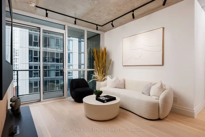 Welcome to Bisha Hotel & Residences ft. Roof Top Infinity pool where world-class design meets sophisticated urban living. This meticulously renovated luxury suite has undergone a top-to-bottom transformation, with no detail overlooked. The suite has smart home fully automated features. Control everything from the main console (i Pad) at entrance or through your phone (Lutron Lighting System w/ all lighting dimmable & ambient, SONOS sound system w/ 4 wired speakers throughout condo, Nest Wi Fi Thermostat, Smart Toilet-Bidet, Smart Sensor Faucet). Step into an airy, open-concept space with 9-foot exposed concrete ceilings, 7.5 European White Ash engineered hardwood floors, & 7.5 designer baseboards throughout. The bright living and dining area is anchored by a custom millwork entertainment unit ft. integrated ambient lighting, a pop-up receptacle, and a Samsung 55 QLED TV. Floor-to-ceiling sliding glass doors open to a private balcony w/ premium composite decking and captivating city views. The chef-inspired kitchen boasts quartz countertops & backsplash, integrated high-end appliances, sleek valance, track lighting, & a functional center island with linear suspension chandelier perfect for entertaining. The primary bedroom offers custom millwork, pendant lighting, & a double sliding-door closet w/ motion sensor lighting & glass panels. A versatile den, w/ floor-to-ceiling windows & pot lighting, making it ideal as a home office or lounge. Indulge in a lavish 4-piece bath w/ a custom floating vanity, oversized mirror, custom glass shower enclosure over the tub, a smart bidet toilet, & a motion-sensor faucet. Enjoy 5-star amenities including: 24-hour concierge, meeting rooms, gym, infinity pool, rooftop deck, rooftop restaurant & bar + more. Steps away from Rogers Centre, Convention Centre, Roy Thomson Hall, Tiff, TTC, GO, fine restaurants, & shopping, Walk Score of 99 and Transit Score of 100! This is more than a home its a statement in modern luxury living.