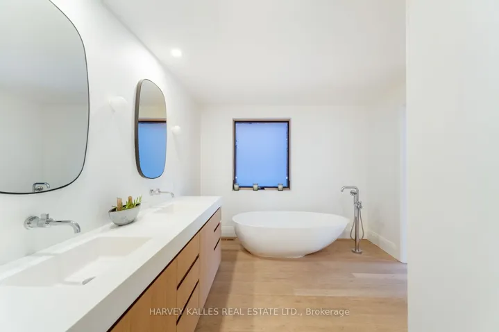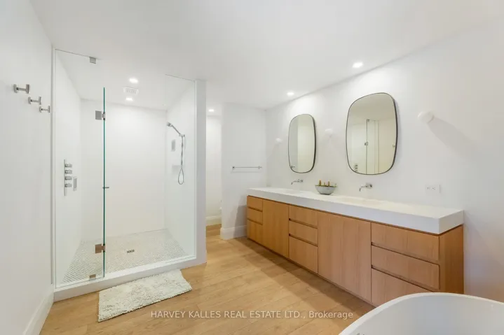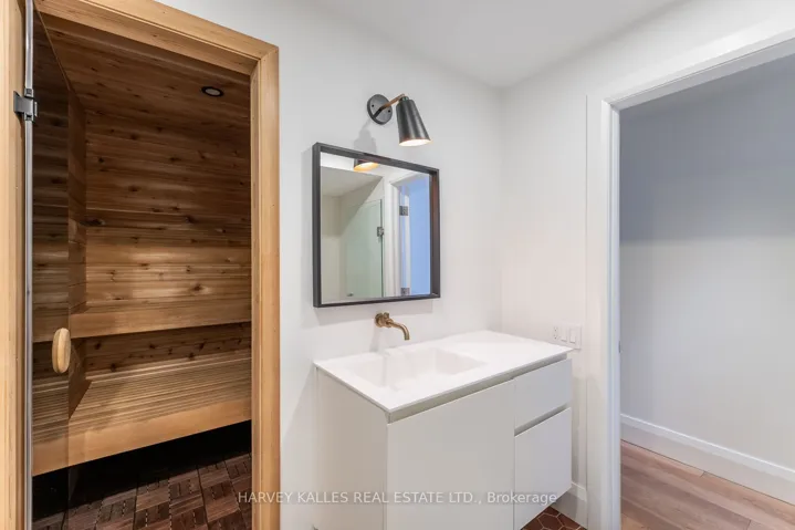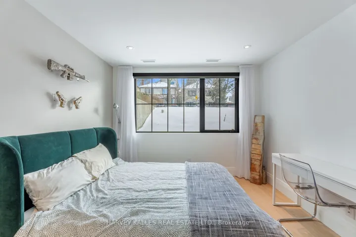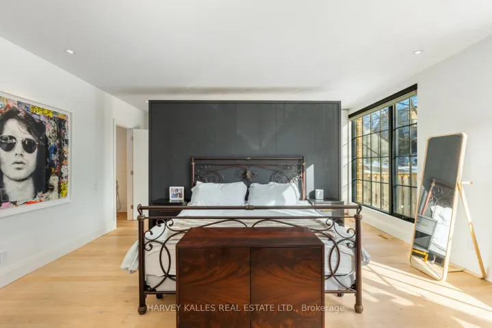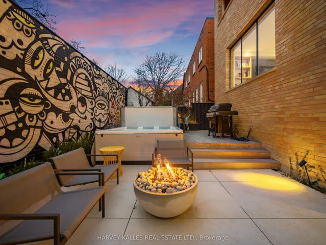 An exceptionally rare offering in a boutique two-residence property in the heart of Toronto’s prestigious Forest Hill Village. Designed with a distinct New York ultra-chic loft aesthetic, this 4-bedroom, 4-bathroom home blends architectural edge with refined comfort.A bold façade with oversized black casement windows sets the tone. Inside, soaring ceilings, expansive glazing, and an open-concept layout create dramatic volume and natural light throughout. Wide-plank hardwood floors, clean lines, and curated high-end finishes deliver a true downtown loft feel – sophisticated, modern, and warm.The main living level is a showpiece where kitchen, living, and dining flow seamlessly in a bright, airy expanse ideal for entertaining. The chef-inspired kitchen features built-in stainless steel appliances, quartz countertops, and a substantial island designed for gathering. It offers the energy of a Tribeca-style loft with the functionality required for everyday family living.The upper level includes a private primary retreat along with additional living space, thoughtfully integrated to balance openness with privacy. The primary suite is serene and spacious, complete with a spa-like ensuite featuring a double vanity and sleek glass shower.Generously sized additional bedrooms make this home equally compelling for downsizers seeking turnkey luxury without compromise, or for larger families who appreciate design-forward living with flexibility.The lower level provides a comfortable rec room, sauna, and versatile space for media, fitness, or guests.Outdoors, the landscaped backyard oasis offers year-round enjoyment with a hot tub, seating areas, and lush greenery – anchored by the commissioned mural Creative Chaos (August 2023) by world-renowned Brazilian artist Elvis Mourao, dramatically bottom-lit against brick.Private parking completes this rare lifestyle opportunity steps from top schools, boutique shops, and the charm of Forest Hill Village.