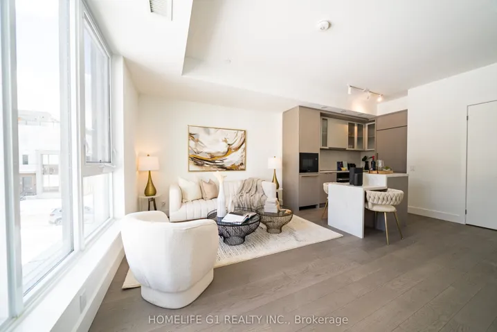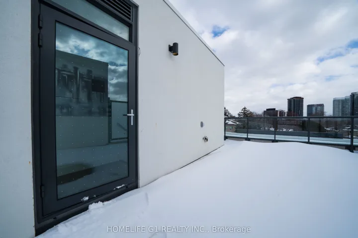 Welcome to this exceptional 2-storey modern townhome offering 3+1 bedrooms, 2.5 bathrooms , and over 1,355 sq. ft. of stylish, functional living space in the heart of Bayview Village. The open-concept layout is anchored by a modern kitchen featuring Dekton Silver white polished slab, a stone island, custom cabinetry, and premium Miele appliances – perfect for everyday living and entertaining. Large windows fill the main level with beautiful natural light, creating an airy and inviting atmosphere throughout. The space is finished with light engineered wood suite flooring, complemented by ribbed glass cabinet inserts and elegant lacquered wood accent cabinetry, adding warmth, texture, and a refined contemporary touch to the overall design. Step outside to your expansive 824 sq. ft. rooftop terrace – your own private retreat with stunning city views. Upstairs, enjoy three spacious bedrooms side by side, including a primary suite with a generous walk-in closet and a modern ensuite with a frameless glass shower. Two parking spaces and a locker are available for purchase. Residents enjoy thoughtfully curated amenities designed to elevate your lifestyle, including a fitness centre, private dining room, outdoor BBQ terrace, library lounge, and stylish lobby with well-appointed common spaces. Designed by the acclaimed II BY IV Design studio, this boutique residence offers elevated finishes and refined details throughout. Perfectly situated just steps to transit, Bayview Village Shopping Centre, top-rated schools, parks, and easy access to Hwy 401. An exceptional opportunity to own in one of Bayview Village’s most sought-after boutique residences. Book your showing today! 2 parking spots and locker is available for purchase. Monthly Maintenance Fees: $1,009.76 (Common Elements) + $58.70 (Bulk Internet) = $1,068.46