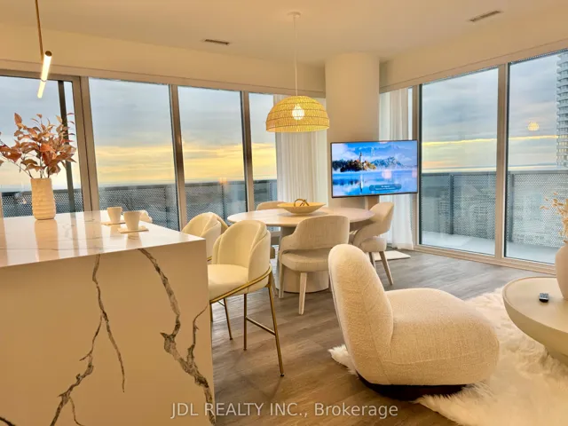 Enjoy Unbelieeevable Million Dollar Views Facing the South West Corner at Sugar Wharf Condominiums! This 3 Bed, 3 bath, located on the 58rd floor offers over 1273 sq. ft of interior space along with an expansive 444 sq. ft wraparound balcony. This unit is the epitome of luxury, Lots of Upgrade! downtown living. Just steps from Sugar Beach, shops, restaurants, and transit, with direct access to the future PATH and future TDSB school. **EXTRAS** New Stainless Steele Appliances: Stove, Fridge, Microwave, Dishwasher. Washer & Dryer. Upgrade Kitchen Island & Blinds & Lights & Closet & Wine Fridge, Include One Parking & Storage Locker.