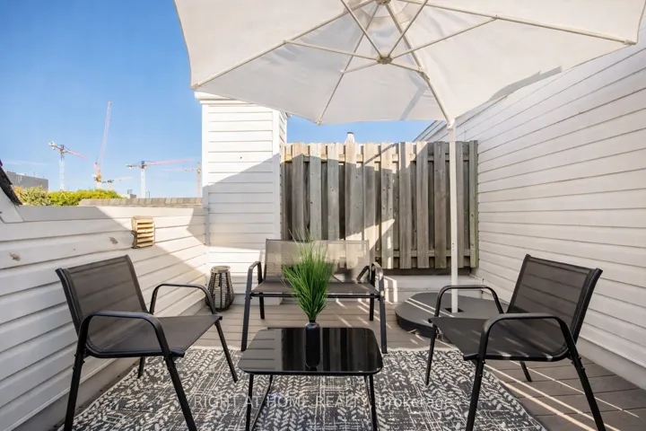 Renovated 3-bedroom townhome with private rooftop terrace and CN Tower views in the heart of King West. Reimagined in 2024, this home blends modern design with functional living. The open-concept kitchen features quartz countertops, a continuous backsplash, breakfast bar seating, and sleek black appliances, flowing seamlessly into bright living and dining spaces. Both bathrooms have been upgraded with spa-inspired finishes, while new flooring and recently replaced blinds throughout enhance light, privacy, and comfort. The rooftop terrace offers a rare outdoor escape, perfect for entertaining or unwinding with skyline views. With 3 true bedrooms, this layout easily supports a home office or guest space. Includes private parking for added convenience. Steps to Liberty Village, Ossignton Avenue and Queen West restaurants, cafes, fitness studios, parks, and transit. A turn-key opportunity to own a stylish, move-in-ready home in one of Toronto’s most vibrant neighbourhoods. Some photos have been virtually staged.