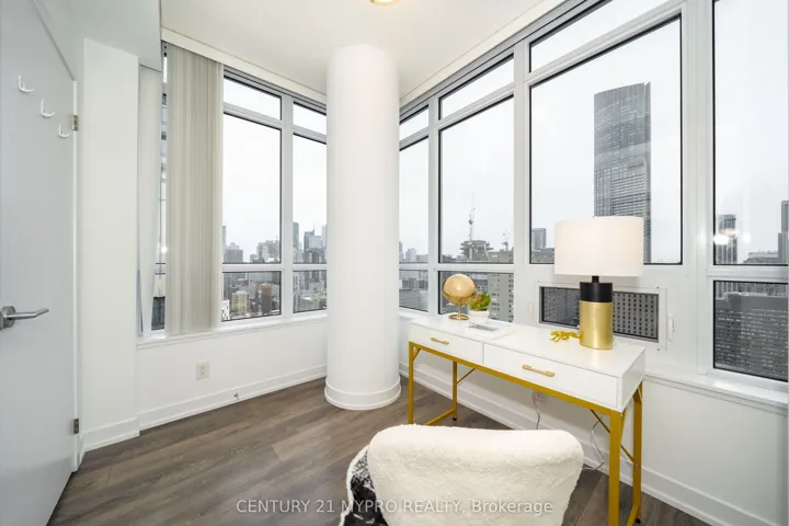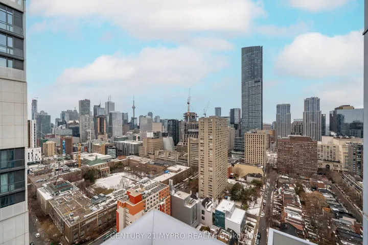 Bright 2 + 1 Corner Unit with Panoramic Southwest & CN Tower Views! This like-new, freshly painted unit boasts a very efficient layout with 2+1 bedrooms, 2 baths, and a DEN CAN BE 3RD BEDROOM or OFFICE with LARGE WINDOWS, door & closet-a huge upgrade from the builder. Every room has windows, filling the home with natural light. Enjoy panoramic skyline views from the large balcony, and hardwood floors throughout complete this stunning space. Locker included. Amenities: rooftop BBQ, rooftop lounge, party room, theatre, yoga & TV rooms, gym, study, guest suites, pet wash, 24-hr concierge. Steps from Yonge & Dundas, TTC (College Subway & Carlton), restaurants, shops, Loblaws, LCBO, Toronto Metropolitan U, University of Toronto. A must-see unit perfect for owners or investors seeking style, convenience, and spectacular city views.