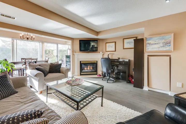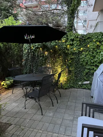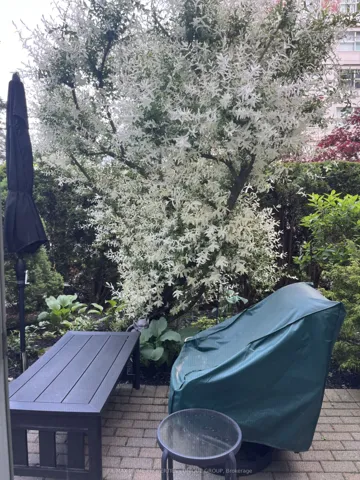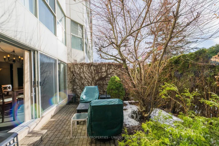 Rarely offered spacious 1 bdrm, 2 bath, approx. 906 SF & generous private patio. Gated building nestled on ravine/protected conservation area offer both an escape and invitation. Few condos offer such unique livability. An entertainer’s paradise boasting secluded backyard with substantial private patio, gas BBQ line & personal garden. A true sanctuary and ideal setting for intimate gatherings & lively entertaining. Enjoy summer nights hosting dinners, sunset cocktails, morning coffee or back in the sun. Living rm fireplace adds a warm, relaxing touch for cozy evenings. Well-designed for entertaining with open kitchen connecting seamlessly to liv & din rms. Sunroom currently used as dining rm or use as home office. Floor-to-ceiling windows bring abundant natural light and walk-out leads to serene retreat ~ your own backyard! Garden or lounge on your patio behind the privacy of your trees. Large bdrm fits king bed, has 3 pc enste & 3 closets. Laundry Rm offers x-tra storage, in addition to 3 lockers. Pkg conveniently located on suite level, steps away. No waiting for elevator. Perfect for first time buyers or downsizers looking for comforts of a house. Ste adjacent to landscaped Courtyard & pond. Well-established building cherished for its sense of community and spa like amenities. Residents enjoy whirlpool, indoor salt water pool, gym, billiard and card rms, workshop, fully furnished guest suite. Elegant party room w/full kitchen, wet bar, dance floor, fireplace & terrace. Stunning library filled with excellent assortment of books & videos. Tennis court, car wash bay, dog run and 24 Hr Concierge/Security. Socially active building hosts dinners, parties, BBQs, exercise classes, aqua fit, book club, movie nights and more! Walk to Grocers, Coffee Shops, Aga Khan Centre. Close to Shops at Don Mills, Restaurants, VIP Theatre. LRT Convenient to DVP/401, Hike/Bike.