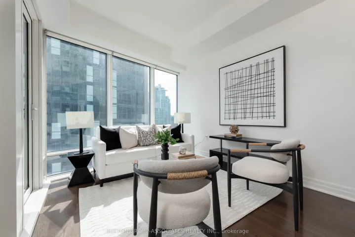 Experience sophisticated downtown living in the iconic L Tower, ideally located at the foot of Yonge Street just steps from the waterfront. This bright southwest-facing suite is filled with natural light and offers beautiful views of the lake and city skyline.Offering 747 sq. ft. of thoughtfully designed living space, this rare 1+Den, 2-bathroom layout provides exceptional flexibility and outstanding value in one of downtown Toronto’s most recognizable buildings. The spacious den can easily function as a second bedroom, guest suite, or stylish home office.The open-concept living and dining area is perfect for entertaining, featuring premium Miele appliances and a walkout to a private balcony where sunlight pours in and city views create the perfect backdrop.The generous primary bedroom serves as a relaxing retreat with a walk-in closet, private ensuite, and sleek frosted sliding doors that add a contemporary architectural touch.This exceptional suite also includes one parking space, 24-hour concierge and access to luxury amenities including an indoor pool, guest suites, a theatre, gym and visitor parking. An incredible opportunity to own a stylish, spacious condo that combines luxury living, smart layout, and great value in the heart of the city.