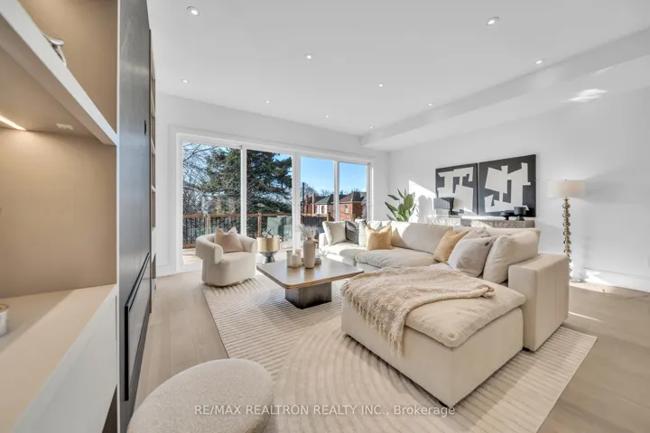 Welcome to 17 Lanark. A stunning blend of modern design, exceptional craftsmanship & sun-filled living spaces, this beautifully built home offers over 3,500 sqft of thoughtfully designed living space in one of Toronto’s most desirable neighbourhoods. Featuring a striking limestone façade, elegant white oak flooring, expansive floor-to-ceiling windows, & five skylights, the home is flooded W/ natural light. The main floor features 10-foot ceilings & a seamless open-concept layout designed for both everyday living & effortless entertaining. The extra-large chef’s kitchen, complete W/ high-end Monogram stove & B/I fridge & custom cabinetry, & a dramatic oversized centre island, is perfect for gathering. The warm, inviting family room W/ a fireplace, integrated shelving, & a walkout to the deck & fully fenced backyard creates the ideal indoor & outdoor lifestyle. Smart lighting throughout the home enhances both convenience & ambiance, allowing for modern, customizable living. On the second floor you find the luxurious primary retreat featuring a large walk-in closet & a spa-inspired ensuite with custom vanities designed for ultimate relaxation. Generous windows throughout the upper level bring in abundant natural light. The lower level is a rare highlight, offering a fully legal secondary suite W/ its own private laundry & walkout to the backyard-perfect for extended family, guests, or rental income. With soaring 12ft ceilings & large floor-to-ceiling windows, the space is exceptionally bright & open. The suite also features a full kitchen, along W/ over 200 sqft of private walk-up space, providing excellent outdoor space for occupants. A built-in garage W/ mudroom entry B/I closets and a dog wash for everyday convenience and functionality. Enjoy being steps from the Eglinton LRT, top-rated schools & close to shops, restaurants & parks. Don’t miss your chance to call this exceptional home yours! A rare offering in a vibrant, growing community.