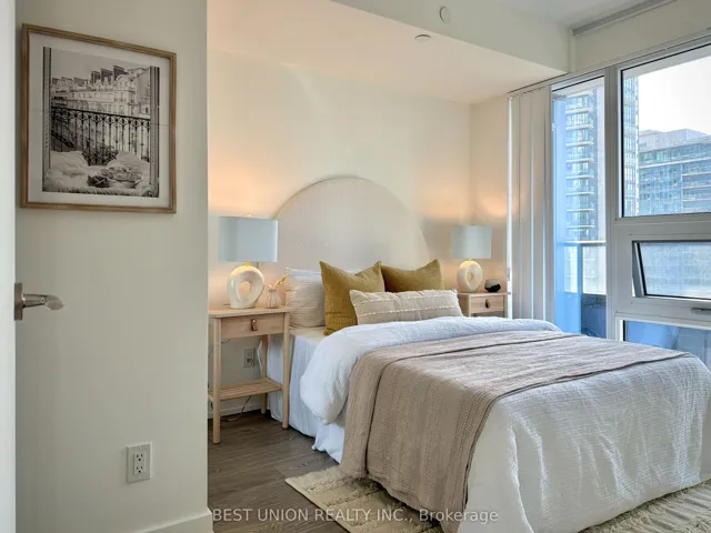 Experience elevated living at Zen King West in Liberty Village. This sun-drenched, functional 2-bed + den suite boasts large windows with unobstructed views. Contemporary finishes include smooth ceilings, laminate flooring, and a stylish kitchen equipped with stone countertops, sleek cabinetry, and integrated stainless steel appliances. The primary bedroom includes a private 4-piece ensuite, while the enclosed den provides flexible space for a home office, guest area, or potential 3rd bedroom. Perfectly positioned adjacent to Strachan for easy commuting via the Gardiner, GO, or TTC, you’re steps from the waterfront & downtown’s best dining. Amenities including a 5,000 sq. ft. gym, outdoor sky track, and a massive 3,000 sq. ft. spa. Luxury meets practicality in this premier urban retreat.