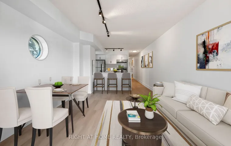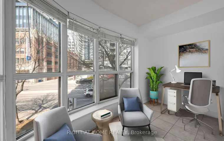 Welcome to Queen’s Harbour! This beautifully recently renovated condo is perfectly situated on charming Queen’s Quay offering both comfort and functionality. Walk into soaring 9ft ceilings, brand new porcelain tiles and engineered laminate floors.The Spacious primary bedroom features wall-to-wall mirrored closets and a bright window with tons of natural light. Down the hall you will find upgraded bath floors with a spa like vanity, mirror w/built in light and new sliding glass door. Open concept entertainment kitchen showcases brand new porcelain tiles, cabinets, quartz counter tops w/breakfast bar & back splash, deep undermount sink and S/S dishwasher. Direct access to enclosed sun filled den for multi purpose use. Conveniences include ensuite laundry, fridge, stove, dishwasher, parking, locker, hydro & water included in your maintenance fees. A brand new air conditioning unit was installed valued at $4000 and locker brought up to fire code valued at $6000. Lobby was recently upgraded to welcome you and your guests. Ideally located across from the Lakeshore waterfront. Steps to Porter Airlines, Loblaws, scenic parks, recreational trails, restaurants, cafés. TTC transit at your door step and a short drive to the Gardiner.