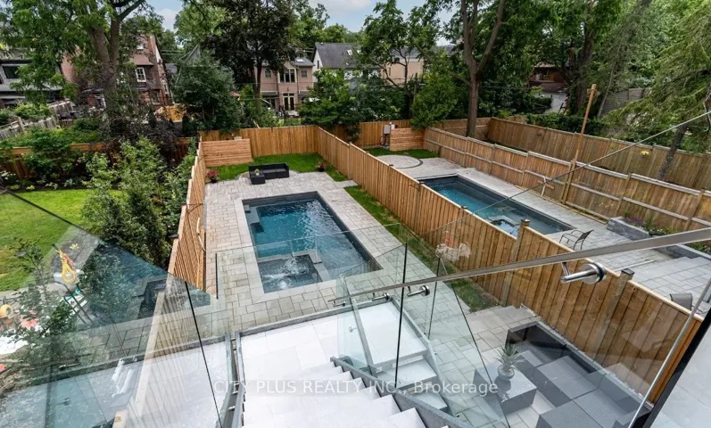 Designer Tomas Pearce. Defined by exceptional elegance and modern comfort & style for your family. 4 Bedroom Home, 3-storey above the south-facing ground with luxurious swimming pool and hot tub, Two-level contemporary patios mixed with glass, steel & marble from the 2nd level kitchen & dining & living to ground level all the way to the pool and garden. Heating driveway. Top-level and Lower-level 2 laundry system. Modern living, dining, and kitchen with ample space and see-through bright light. In one of the most affluent neighbourhoods, close to the best private and public schools: John Ross, Havergal College, UCC, many more & close to all amenities.