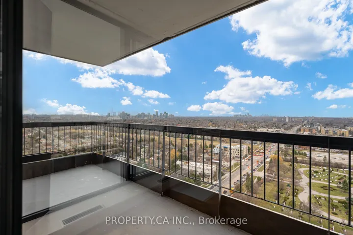 Rare opportunity to own a spacious corner suite on the 26th floor with breathtaking unobstructed south-east city views. This bright and functional 2-bedroom, 2-bathroom layout offers over 1,000 sq. ft. of living space and an incredible wrap-around balcony, perfect for taking in panoramic skyline views. Featuring a generous open-concept layout with a dedicated living and dining area, oversized primary bedroom with ensuite, ample closet space, and a dedicated vanity/dressing area. The second bedroom is generously sized, ideal for a full bedroom setup, guest space, or home office. Parquet flooring throughout and an excellent overall flow enhance the space. This is your chance to renovate and customize to your taste, or move in and enjoy the space as-is. Includes parking and locker. Located in a quiet, well-managed building with reasonable maintenance fees, just steps to TTC, parks, community centre, schools, and shopping.