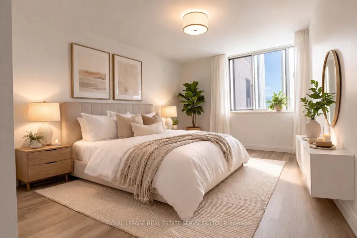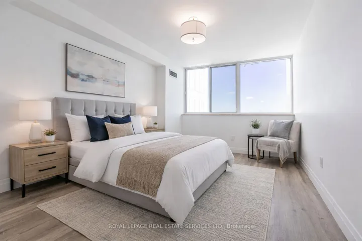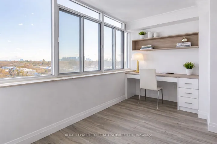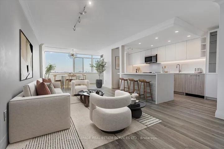 Sun-filled and beautifully renovated, this two-bedroom condo offers a lifestyle of ease and understated elegance. The open-concept kitchen is the heart of the home, featuring a striking quartz waterfall island with breakfast bar seating, custom cabinetry, stainless steel appliances, and dual-panelled Bosch dishwashers. Smooth ceilings, crown mouldings, pot lights, and an updated electrical panel reflect the thoughtful attention to detail throughout. Wall-to-wall windows showcase serene east-facing treetop views, while a dedicated office nook off the kitchen provides a flexible work or study space. The expansive primary suite easily accommodates king-sized furniture and includes a walk-in closet and modern three-piece ensuite. The second bedroom is ideal for a child, guest room, or flex space, complete with a built-in closet and large east-facing window. Practical features include a separate laundry room with storage, one parking space, and a storage locker. The building has been recently updated with completed exterior, windows, lobby, and corridors. Maintenance fees include Rogers cable TV and high-speed internet. Amenities include a 24-hour concierge, gym, sauna, Sabbath elevator, and visitor parking. Steps to TTC, shopping, and groceries, with Yorkdale Mall and major highways just minutes away.