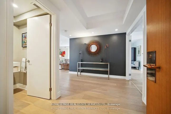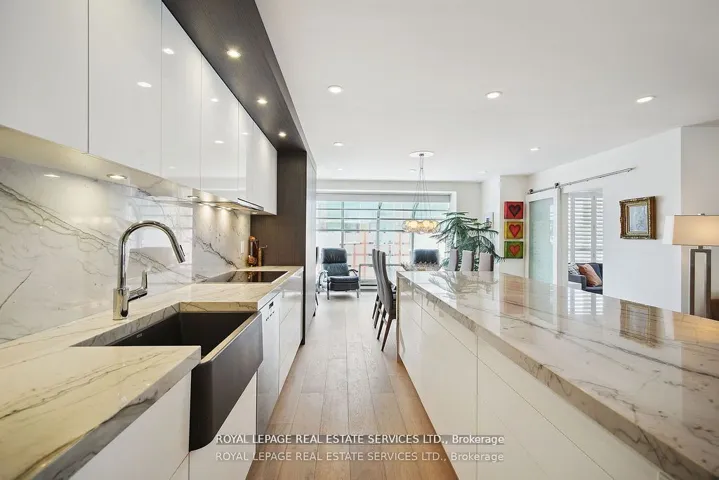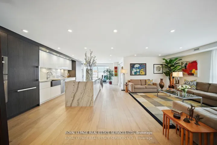 Welcome to Suite 601W at the iconic King’s Landing-a masterpiece by celebrated Canadian architect Arthur Erickson, best known for Roy Thomson Hall. Nestled along Toronto’s vibrant waterfront, this rare, quiet corner unit has been meticulously renovated, offering a unique blend of architectural prestige and modern luxury. Step through a spacious, elegant foyer into a thoughtfully redesigned home perfect for elevated everyday living and entertaining. The heart of the suite features a gourmet chef’s kitchen with a striking 10-ft waterfall island, premium Miele appliances, and custom wine storage-flowing seamlessly into a large open-concept living and dining area. An expansive living room offers the perfect setting to host guests, while the bright solarium provides a private retreat to read, relax, or enjoy a glass of wine. The luxurious primary suite boasts a vast walk-in closet and spa-like ensuite with jetted soaker tub, dual vanities, and private water closet. A full-sized laundry room with built-in storage adds comfort and convenience. Ideally located on the same level as the building’s exceptional amenities: indoor salt water pool & whirlpool, sauna, rooftop terrace with BBQs, outdoor pickleball court, state-of-the-art gym, party room, and golf swing practice range. Includes 1 parking space and 1 locker. With 24-hour white-glove concierge service, premier finishes, and a landmark location, Suite 601W is a rare opportunity to live in one of Toronto’s most architecturally significant residences.