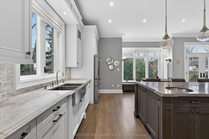 This Newer Custom Built Home, Meticulously Crafted And Sophisticated Designed On A Sun-Filled Southern Prime Lot: 50′ X 117′ !! It Offers Approximately 5,400 Sq.Ft Of Luxurious Living Space! 4+2 Bedrooms And 7 Washroom! E-L-E-V-A-T-O-R For 3 Levels! Impressive Architectural Design With Warm Accents And A Functional Layout! Soaring Ceiling Height ((1St Flr: 10′, Office: 13.5′, 2Nd Flr: 10′ (Including Cof Cling), Rec Rm: 10.5′))! Hardwood Flooring And Led Lighting Thru-Out Main & 2Nd Flr! Beautiful Mix Of Limestone And Brick In Facade, And Full Brick For Other Three Exterior Sides!! Heated Floor in Lower Level And Snow Melting System for Driveway! High-End Millwork! Paneled Walls, Crown Molding, Coffered Ceilings, Led Potlights & More! The Main Floor’s Flawless Layout Seamlessly Combines Functionality & Desirability, Featuring Spacious Living & Dining Areas With A Gas Fireplace, A Stylish Office/Library Featuring High Ceiling And Integrated Bookcases And Paneled Walls, Perfect For Work From Home! Walkthrough Pantry Leads To A Chef-Inspired Kitchen And Breakfast Area With State-Of-The-Art Appliances, Quality Cabinets, And A Built-In Bench! Spacious Family Room With Gas Fireplace, Rich Wall Unit, Walk-Out To Large Deck, Patio And Lovely Backyard. The Second Floor Offers A Breathtaking Master Bedroom, Boudoir W/I Closet And A Sumptuous Heated Floor Ensuite, Plus Three Additional Bedrooms Include Their Own Bathrooms, And A Large Laundry. The Lower Level Boasts An Incredible Recreation Room With A Wet Bar & Walk-Out To A Patio, Plus An Inviting Wine Cellar With Climate Control, A Guest/Nanny Room, Gym, And A Fully Equipped Home Theatre. Very Convenient Location: Minutes From Subway Station, And All Other Amenities! No Sidewalk in Front! This Home Is An Absolute Must See!