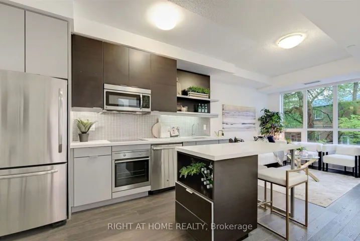 Beautifully maintained suite featuring a south-facing private balcony with serene views over a lush tree canopy. This 1-bedroom + study, 1-bathroom unit offers 9-ft ceilings, engineered oak hardwood flooring, upgraded finishes, and a semi-ensuite bathroom.Offering 592 sq. ft. of interior living space plus a 39 sq. ft. balcony, the total lifestyle area is 631 sq. ft.Residents enjoy excellent building amenities including concierge service, fitness centre, rooftop garden, party room, multimedia theatre, and guest suite.Ideally situated in an upscale residential neighbourhood, just steps from Bayview Village Shopping Centre and the **Toronto Subway Line 1 station at Bayview Station. Convenient access to Highway 401.Parking space and storage locker included. (Photos are taken from Previous listing)