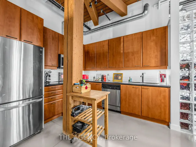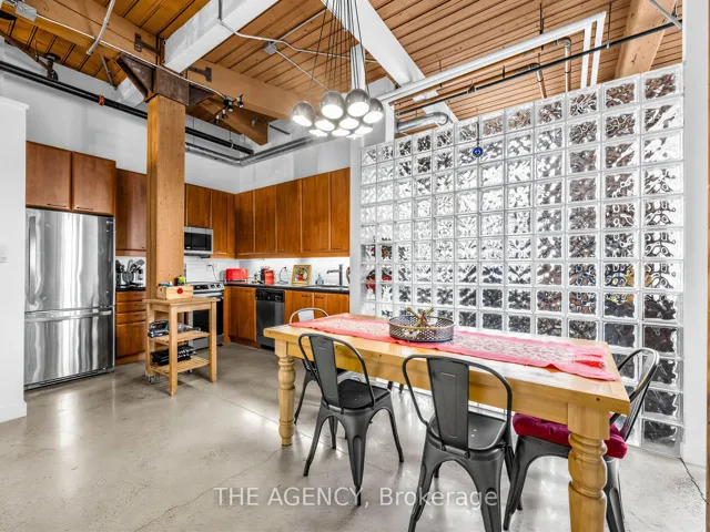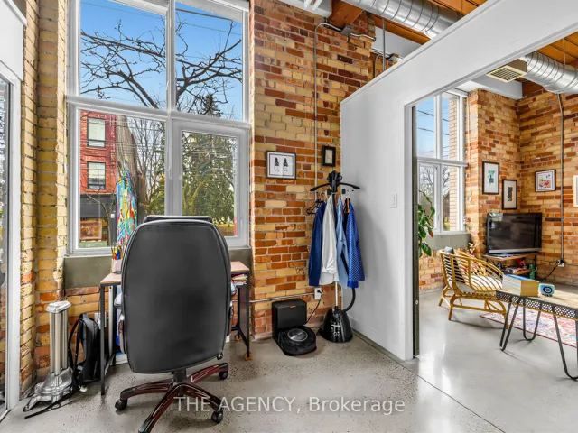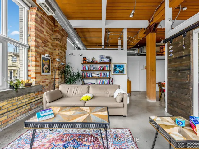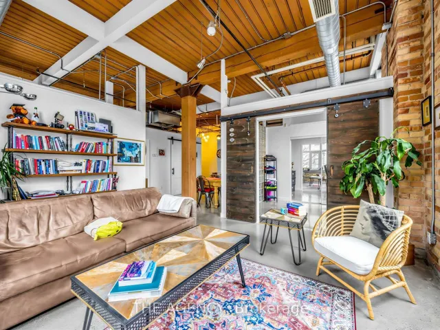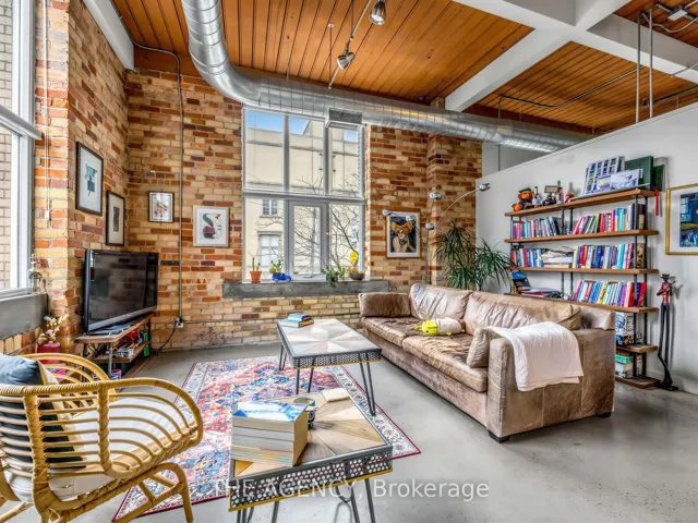 A Rare Opportunity to Own a True Hard Loft in the Iconic Chocolate Company Lofts by Plazacorp. Originally Built in 1912 as the Patterson Candy Company Factory and Converted in 2005, This Landmark Building Blends Authentic Industrial Character With Modern Urban Living. Suite 214 is a Highly Sought-after 2 Bedroom, 1 Bathroom Corner Unit, Post & Beam Loft Living. Unlike the More Common Soft Lofts in the Building, This True Hard Loft Features Soaring Ceilings, Exposed Brick, Timber Beams, and Industrial Ductwork Hallmarks of Genuine Loft Design. Expansive North and East Facing Windows Wrap the Suite, Filling the Space With Natural Light and Offering Views Toward Trinity Bellwoods Park. The Open Concept Layout is Ideal for Both Everyday Living and Entertaining, Complemented by an Updated Kitchen With Granite Countertops and Stainless Steel Appliances. Spacious Bedrooms Provide Flexibility for End Users or Investors Alike. This Boutique, Tightly Held Building Offers 24 Hour Concierge, Fitness Centre, Party Room With Terrace, and Underground Parking. Located Directly Across From Trinity Bellwoods Park and in the Heart of Queen West, Steps to Top Restaurants, Cafes, Shops, and Nightlife. Includes One Underground Parking Space and One Locker. A Rare Offering in a Building Where Units Seldom Come to Market.