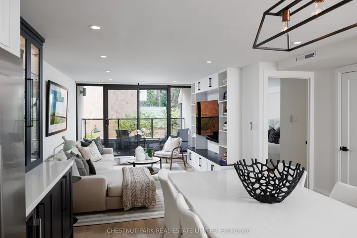 40 Oaklands is a quietly admired boutique building in the heart of Summerhill – known for its strong sense of community, exceptional walkability, and discreet, secure atmosphere. One-bedroom suites here are seldom available, and true single-level living with no interior stairs is especially rare. Beautifully renovated by RTG Designs in 2017, this thoughtfully designed suite centres around a custom kitchen with an oversized island and integrated dining extension, opening to a bright living area with tailored built-ins and a walk-out to a private east-facing balcony set among the trees. Custom millwork continues throughout, including a built-in sideboard with wine fridge, media centre, and bookshelves. The spacious bedroom features a walk-in closet and access to a carefully finished bathroom with heated marble basketweave floors and classic white subway tile. Wide-plank white oak floors run throughout. A generous laundry and storage room adds everyday practicality rarely found in suites of this scale. Includes parking and locker. Easily accessed from the lobby yet quietly positioned within the building-an ideal combination of convenience and privacy. The Oaklands is a well-managed, pet-friendly boutique residence with part-time concierge (1-9 pm), visitor parking, bike storage, and car wash. EV charging installation permitted. Maintenance fees include cable and internet. Low property taxes. A calm, turnkey home just steps to Summerhill’s shops, restaurants, parks, and transit-within one of the neighbourhood’s most special boutique buildings.
