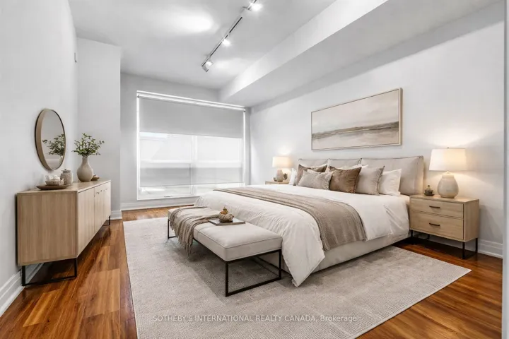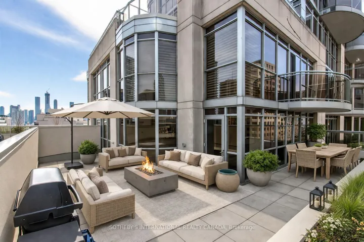 Welcome to “The Clairmont” at Yonge and St. Clair, a rarely offered, beautifully proportioned two bedroom plus den residence offering approximately 1,300 square feet of refined interior living, paired with exceptional outdoor space. A thoughtfully designed layout with a gracious foyer leads into an expansive open concept living and dining area, wrapped in windows and anchored by a walk-out to an extraordinary private terrace of approximately 690 square feet-perfect for seamless indoor-outdoor living and entertaining. A separate balcony, approx 98 sq.ft., adds an additional outdoor retreat.The chef’s kitchen features a centre island, abundant cabinetry, and quality appliances, overlooking the principal living space. The intelligent split-bedroom plan offers privacy, with a spacious primary suite complete with walk-in closet and ensuite bath, while the second bedroom is well-positioned near a full bath. A separate den provides flexibility for a home office or additional living space, as confirmed in the floor plan. Soaring ceilings, rich hardwood floors, and floor-to-ceiling windows enhance the sense of space and light throughout. Includes parking and use of an out-of-suite storage locker. A full-service, luxury building offering 24-hour concierge, visitor parking, fitness centre, sauna, party room, and a beautifully landscaped terrace. Steps to Yonge & St. Clair vibrant shops, restaurants, parks, and TTC. Minutes to downtown.