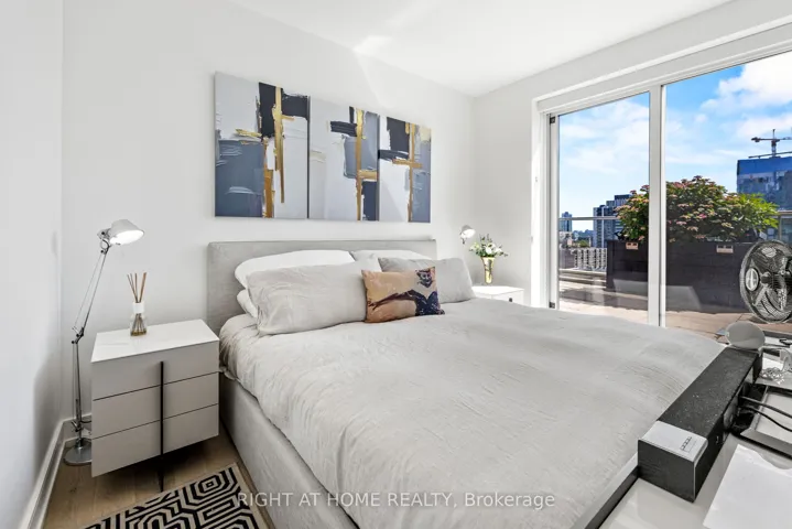 Fantastic Oppourtunity, to own a Unique Urban Garden Space Overlooking the Core. An Extraordinary Offering at King George Square, Impeccably Renovated Corner Residence Redefines Luxury Urban Living with a Remarkable approx. 1,400 sqft Private Terrace-a Truly Rare feature in the Heart of Downtown Toronto. Designed for those who value Sophistication, Scale, and Seamless Indoor-Outdoor Living, this 2-bedroom, 2-bathroom suite delivers an Unparalleled Lifestyle Experience. The Refined interior Showcases a Thoughtfully Curated Open-Concept Layout, Bathed in Natural Light from its Southeast Exposure. The Bespoke Chef’s Kitchen is outfitted with Premium Gaggenau Integrated Appliances including a 24″ Gaggenau Wine Fridge, Sleek Custom Cabinetry, and Elegant Finishes, flowing effortlessly into the living and dining spaces-perfect for both Intimate Evenings and Elevated Entertaining. Custom built-ins, including a Stylish Bar and Wine Storage, add a layer of understated Luxury and Functionality. All Designer Bathrooms & Kitchens Imported from Italy. The Primary Bedroom Sanctuary features direct access to the Terrace and a beautifully appointed ensuite, offering a serene retreat above the city. The second bedroom, enhanced with a custom CLEI Rotational Bed, Imported from Italy, provides versatility as a Sophisticated Guest Suite or Executive Home Office. This Exceptional Residence is complemented with 1 underground parking space, a storage locker, along with Exclusive Building Amenities including 24-hr Concierge Service, Fitness Centre, Party & Meeting rooms, and a Rooftop Garden. Perfectly positioned just steps from St. Lawrence Market, the Distillery District, Premier Dining, Transit, and The Waterfront, this is a Rare Opportunity to own a Statement Home offering Privacy, Prestige, and Expansive Outdoor Living in the City’s Core.