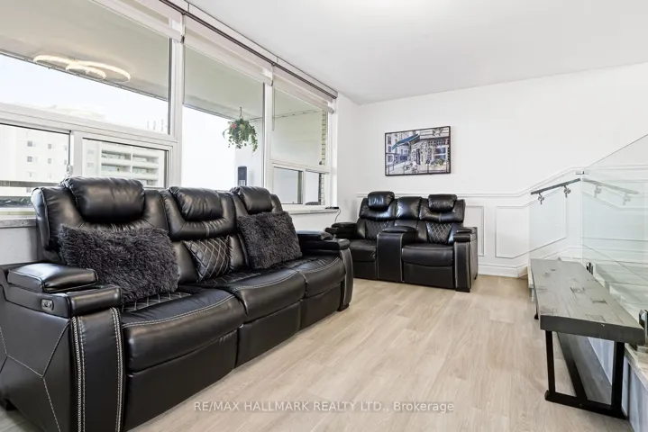 Welcome to this stunning oversized 2-bedroom condo, offering a perfect blend of luxury, style, and breathtaking views. This beautifully renovated suite showcases a massive private balcony with unobstructed city skyline vistas – ideal for relaxing or entertaining. Inside, no detail has been overlooked. The unit has been completely transformed from top to bottom, featuring elegant 24″x24″ floor tiles and a thoughtfully designed dining room extension accented by a sleep tempered glass railing. The modern kitchen is a showpiece, complete with a centre island, quartz countertops and backsplash, and top-of-the-line appliances.Refined finished continue throughout with custom wainscoting, designer luxury wallpaper, and a spa-inspired bathroom boasting a glass shower with striking gold accents and large-format tiles.This is a rare opportunity to own a truly turnkey, upscale condo with exceptional space, premium upgrades, and unbeatable views. Renos’24, appliances’25
