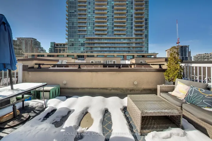 Discover exceptional value and lifestyle in this beautifully updated 3-storey, 2-bedroom townhouse in the heart of Liberty Village. Offering approximately 970sqft of bright, thoughtfully designed living space, this sun-filled home features a rare private entrance in a tranquil and landscaped setting. A rare balance between the feel of a freehold home and the ease of condo living. Located in a lush, well-managed townhome community.The upgraded kitchen is the heart of the home, complete with quartz countertops, tile backsplash, stainless steel appliances, and ample cabinetry-perfect for everyday living and entertaining. Both bathrooms have been stylishly updated, including a convenient main-floor powder room. Two generous bedrooms feature double closets and windows. Crowning the home is an expansive 240+ sqft private rooftop terrace with gas BBQ hookup, a rare, sun-soaked outdoor retreat ideal for relaxing or entertaining above the city. Added conveniences include ensuite laundry, underground parking, and an owned locker. Steps to parks, cafes, gyms, restaurants, boutique shops, transit, waterfront trails, and easy highway access. Whether you’re upgrading from a condo or buying your first home, this turnkey townhouse delivers space, privacy, outdoor living, and an unbeatable Liberty Village location. Move in and enjoy the lifestyle.