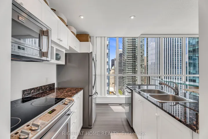 **Photos are from a previous listing. Furnishings differ but the property shows exceptionally well. Tenants have provided their notice to vacate on May 31, 2026** Stylish, well appointed, and in a prime location!! Spacious layouts like this are hard to come across – this inviting living space allows for multiple seating arrangements and a full size dining table, with natural sunlight pouring into the unit. Enjoy panoramic city views that deliver a true “wow” moment every time you step into the kitchen for your morning coffee. Experience vibrant waterfront living year-round, with skating, concerts, marina access, kayaking, and so much more! Includes one parking space conveniently located on P1, close to the elevators, along with ample storage space within the unit. Unbeatable convenience with access to the PATH and just moments from Union Station, the UP Express, Scotiabank Arena, and the Financial District. Building amenities include an indoor/outdoor pool, fitness centre, sauna, party room, guest suites, and 24-hour concierge. Take advantage of this market and secure an exceptional unit that truly embodies downtown living with a calming lakeside vibe!!